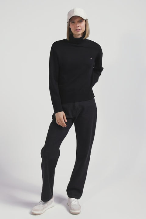 Relaxed black wool and cotton turtleneck jumper