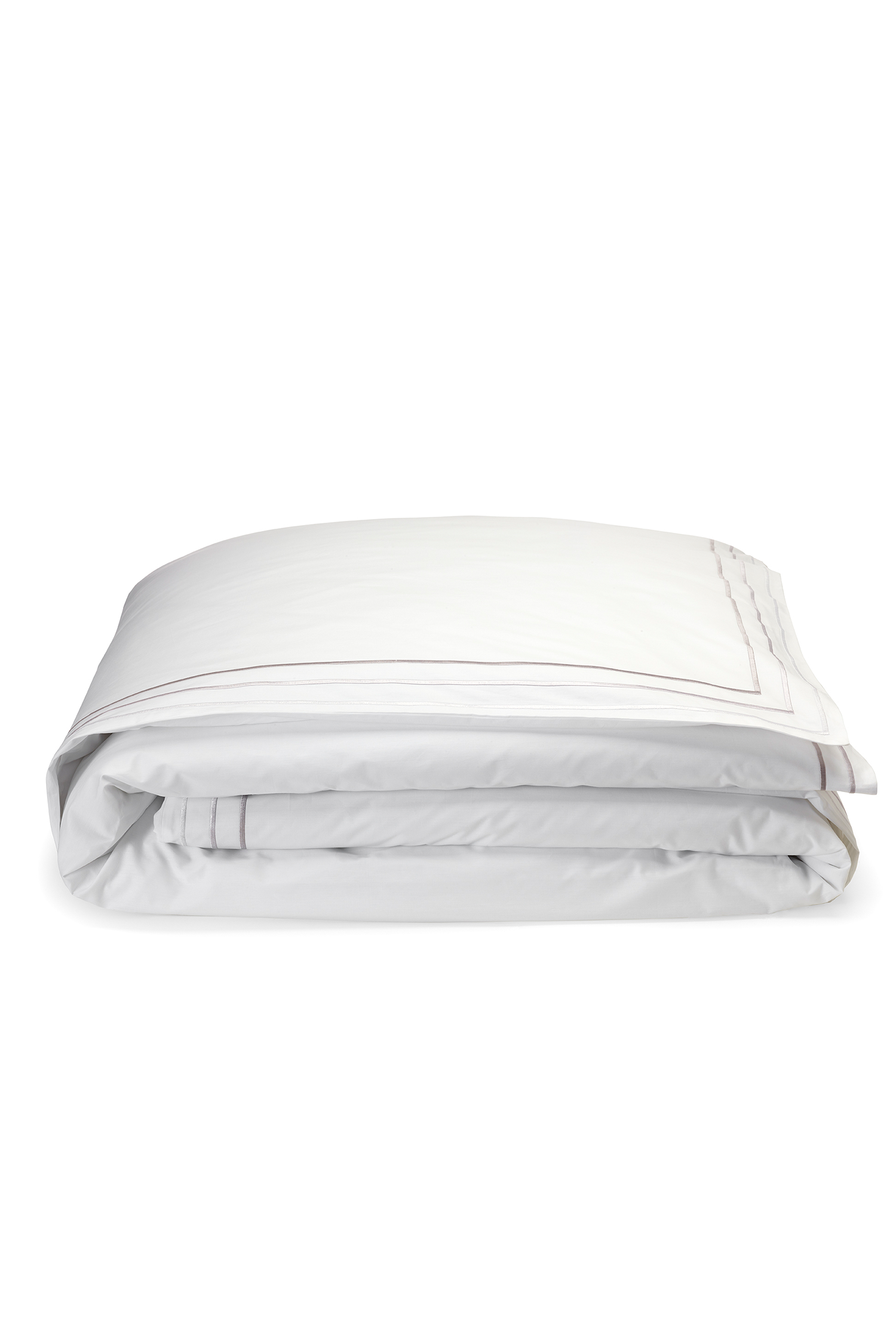 Optez pour la douceur, la résistance et le luxueux toucher du coton Égyptien 200 fils/cm2 avec cette housse de couette blanche ornée sur le pourtour d’une ganse en bourdon tricolore. Une broderie signature Eden Park ton sur ton vient sigler cette gamme qui offre à la fois délicatesse et solidité mais également une durabilité sans pareil.