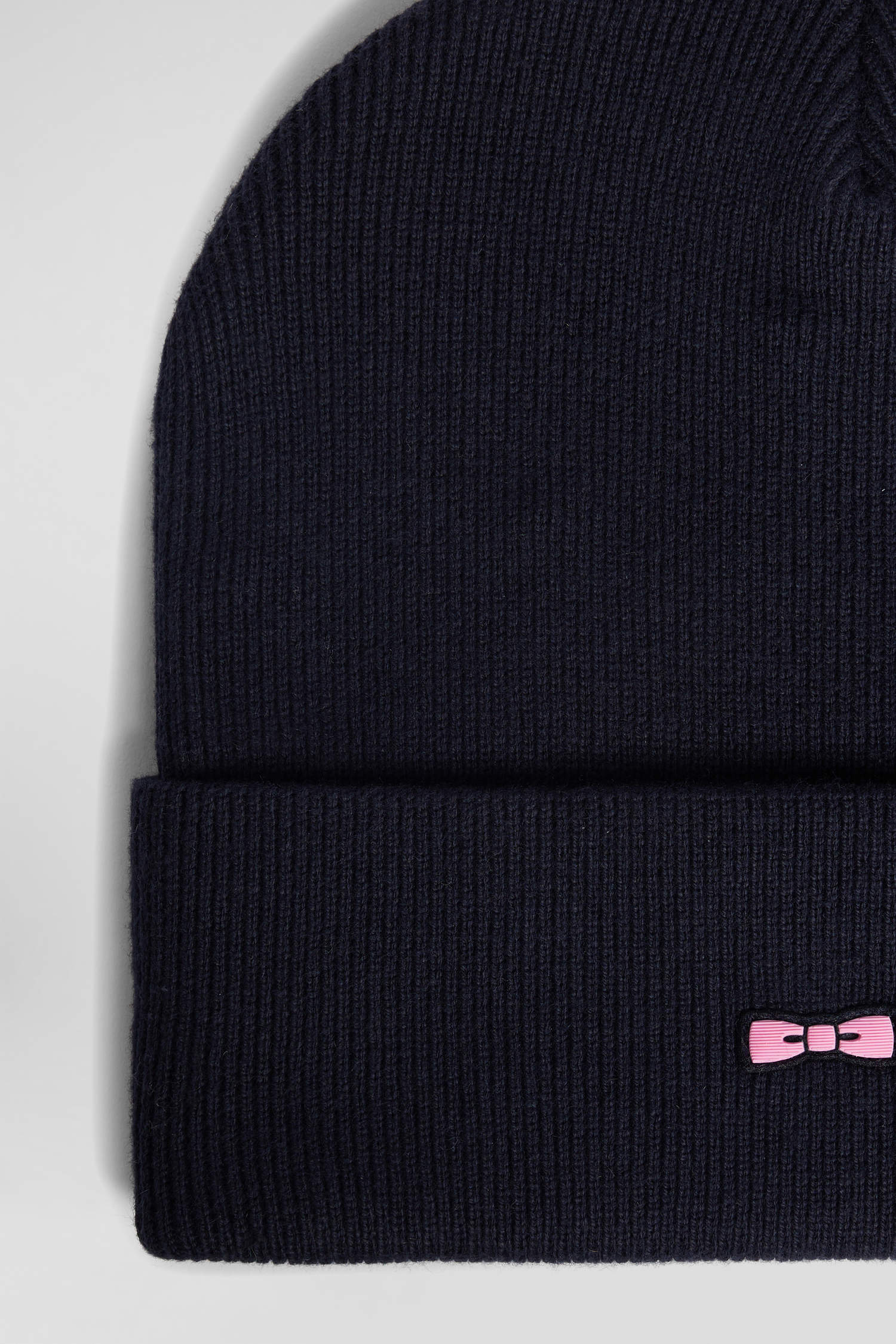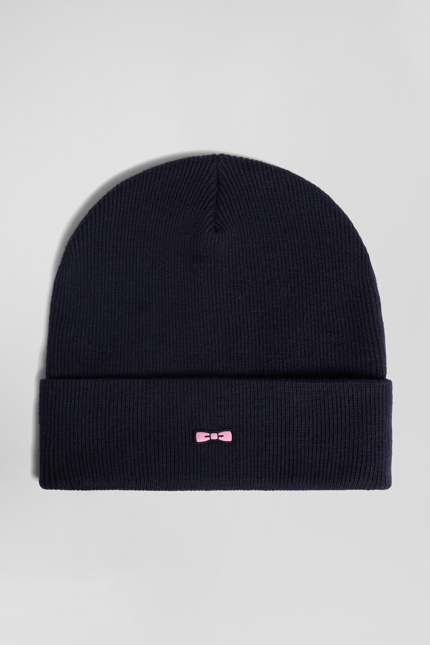 Ce bonnet en maille alliant coton et cachemire vous permet de bénéficier de sa chaleur et d'un style soigné. Son bord-côtes assure un ajustement parfait, tandis que sa broderie nœud papillon rose lui apporte une touche d'élégance reconnaissable au premier regard.
