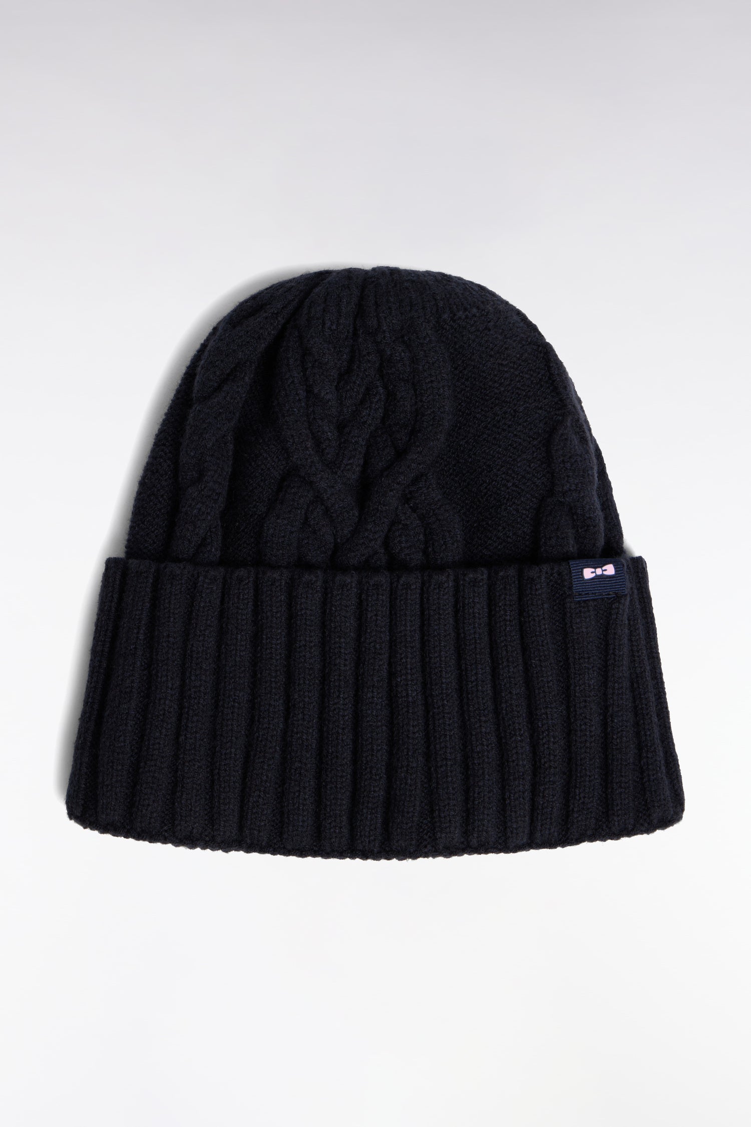 Avec sa maille torsadée au relief délicat, ce bonnet mêle chaleur et authenticité. Tricoté en coton mélangé, il se décline en écru ou en marine pour s’adapter à tous les styles. Son revers tricoté est discrètement orné d’une griffe à l’emblème de notre Maison de mode : le nœud papillon rose