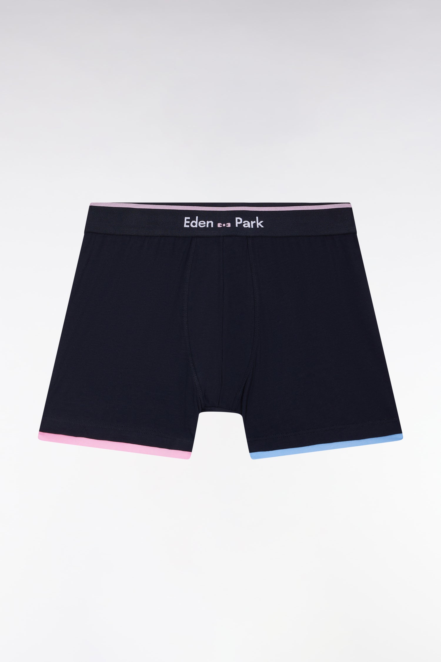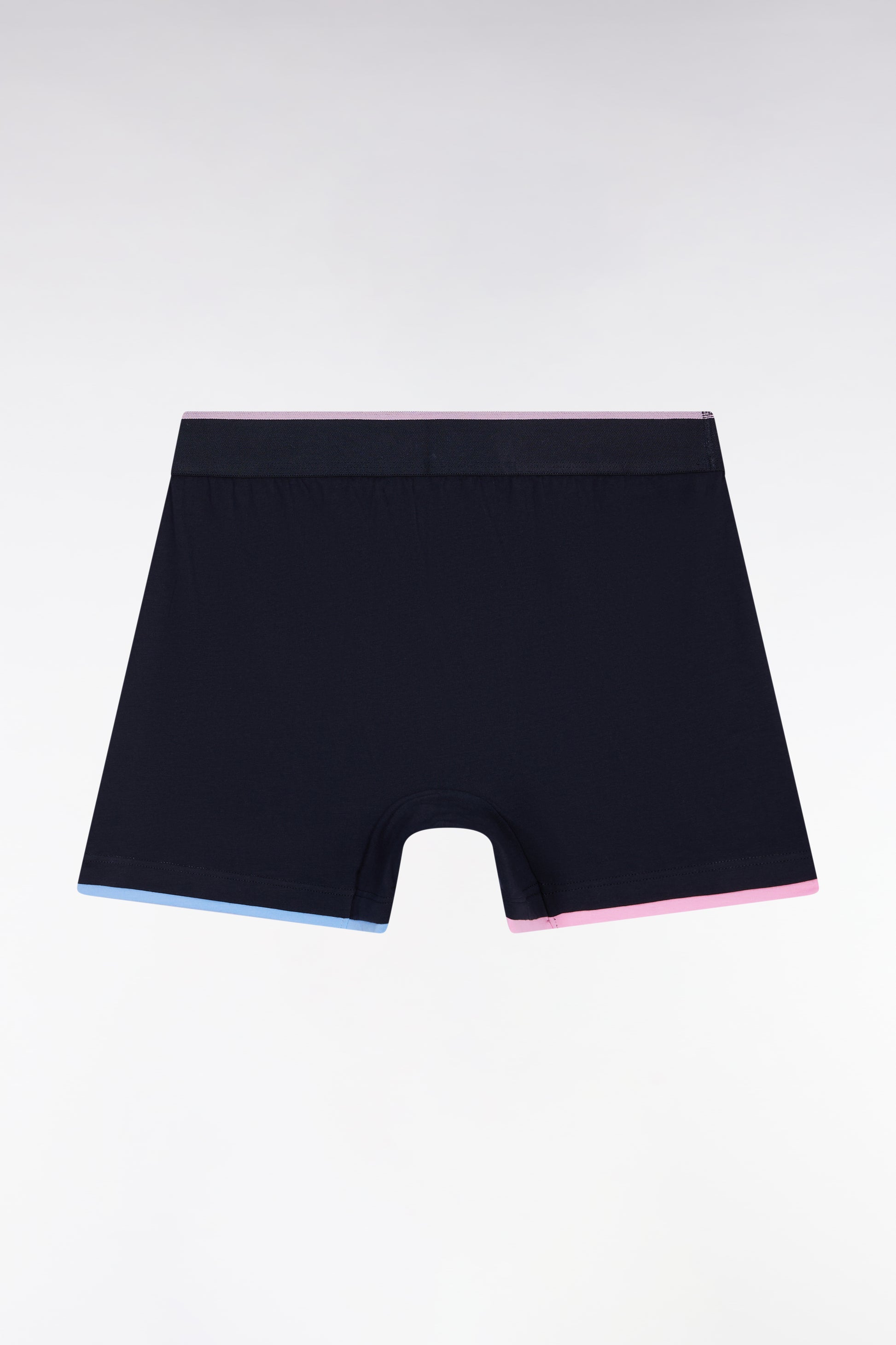 Conçu pour suivre tous vos mouvements, ce boxer en coton stretch associe maintien optimal et liberté de mouvement. Sa taille élastiquée siglée et ses bordures de jambes sont soulignées de détails rayés de couleurs contrastées : un essentiel dans le plus pur esprit sport-chic de notre maison française