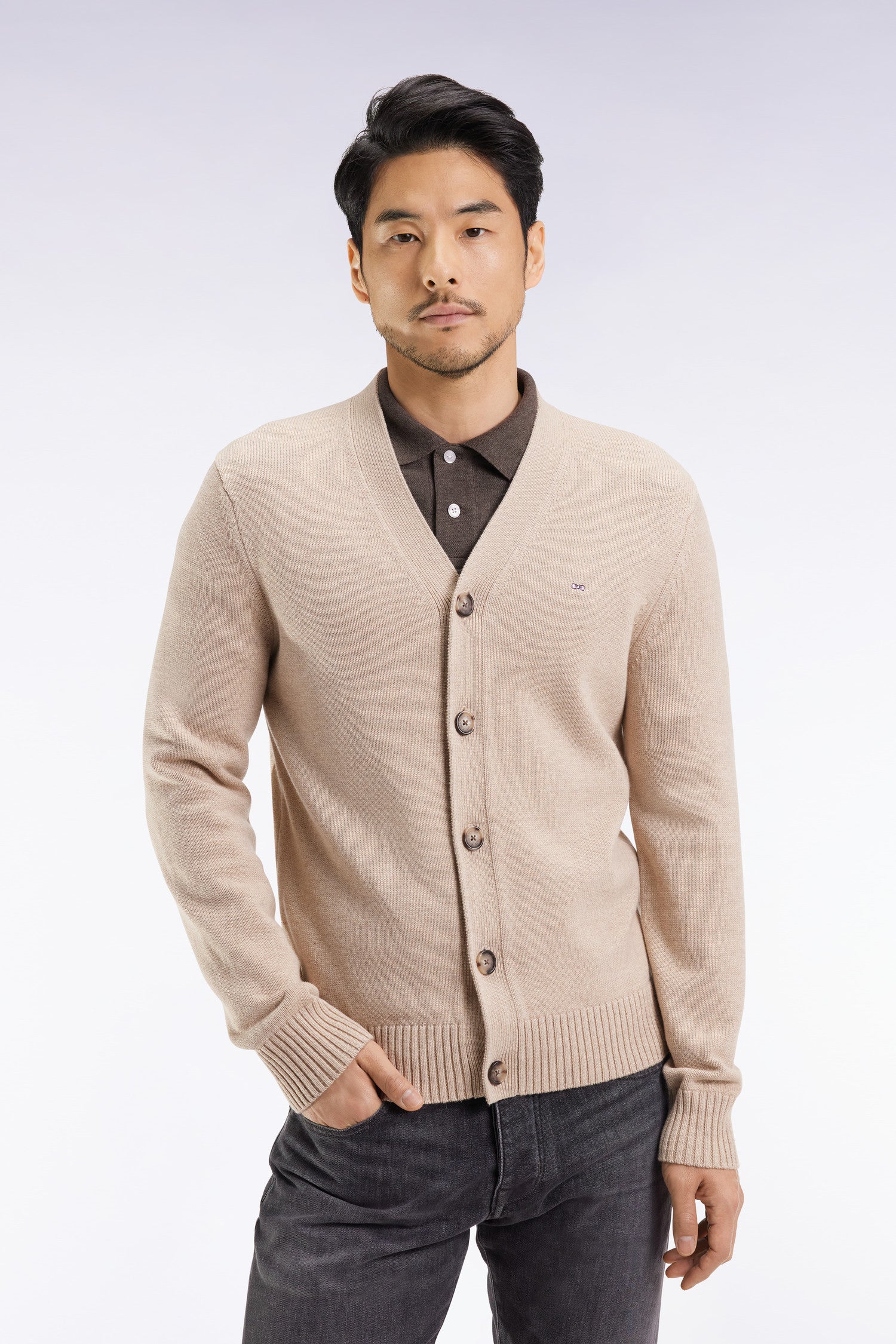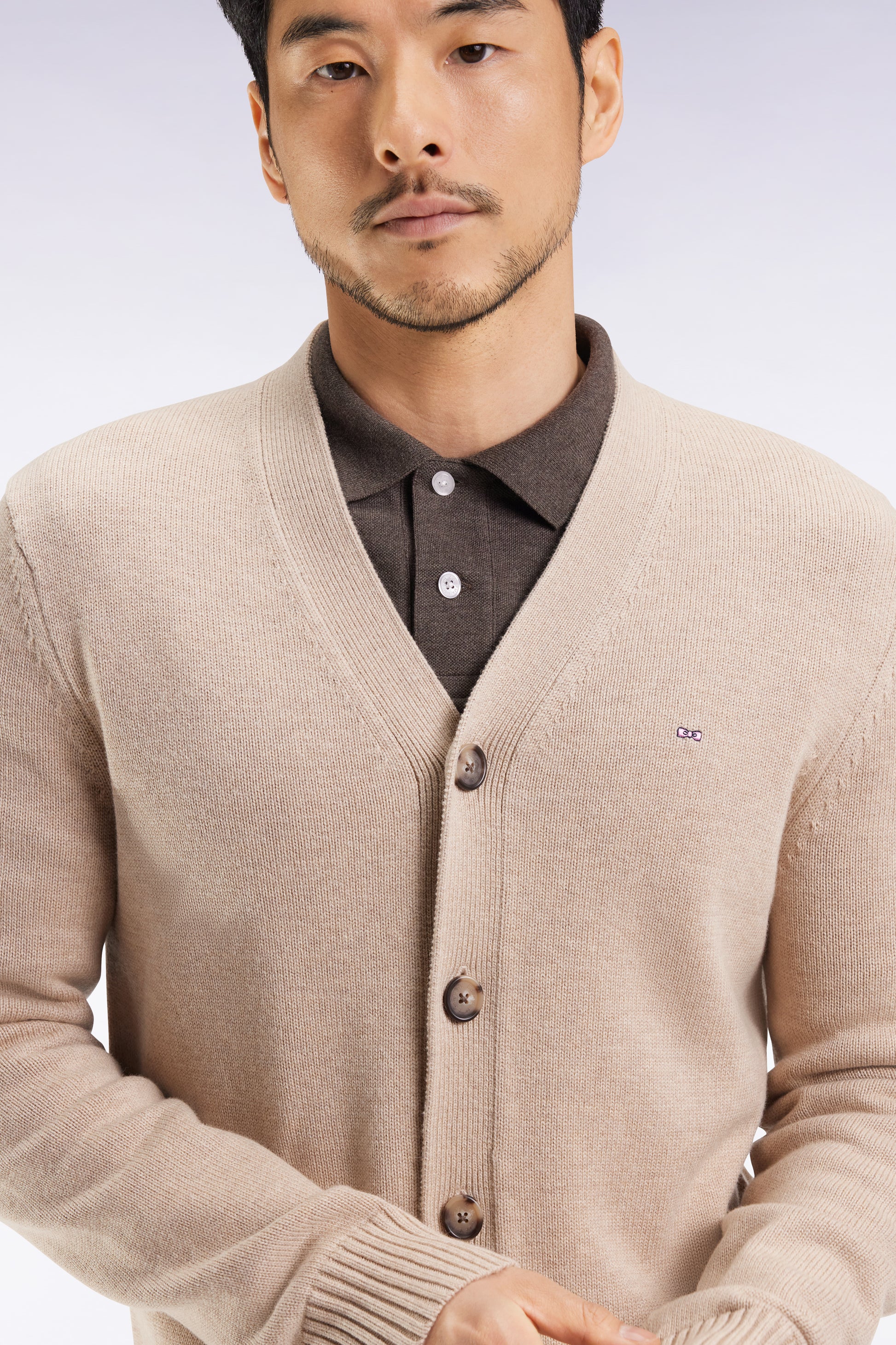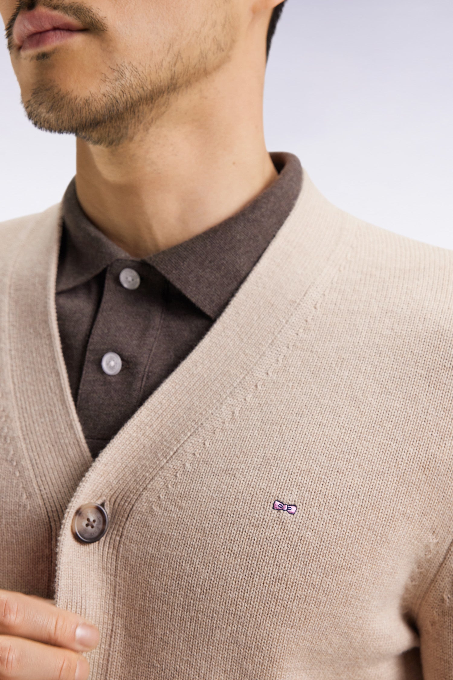 Le style de notre maison se reconnaît à ses équilibres subtils : rigueur de la coupe, matières de qualité et liberté du détail. Avec sa maille épaisse tricotée à plat dans un doux mélange laine - coton, ce cardigan col V incarne l’alliance parfaite entre savoir-faire et durabilité. Pensée pour durer, sa construction robuste et ses finitions soignées, de la patte de boutonnage aux bords-côtes, en font une pièce forte du vestiaire masculin, capable de traverser les saisons sans perdre de son élégance. La broderie nœud papillon rose signe discrètement cette pièce d’exception, fidèle à l’héritage Eden Park