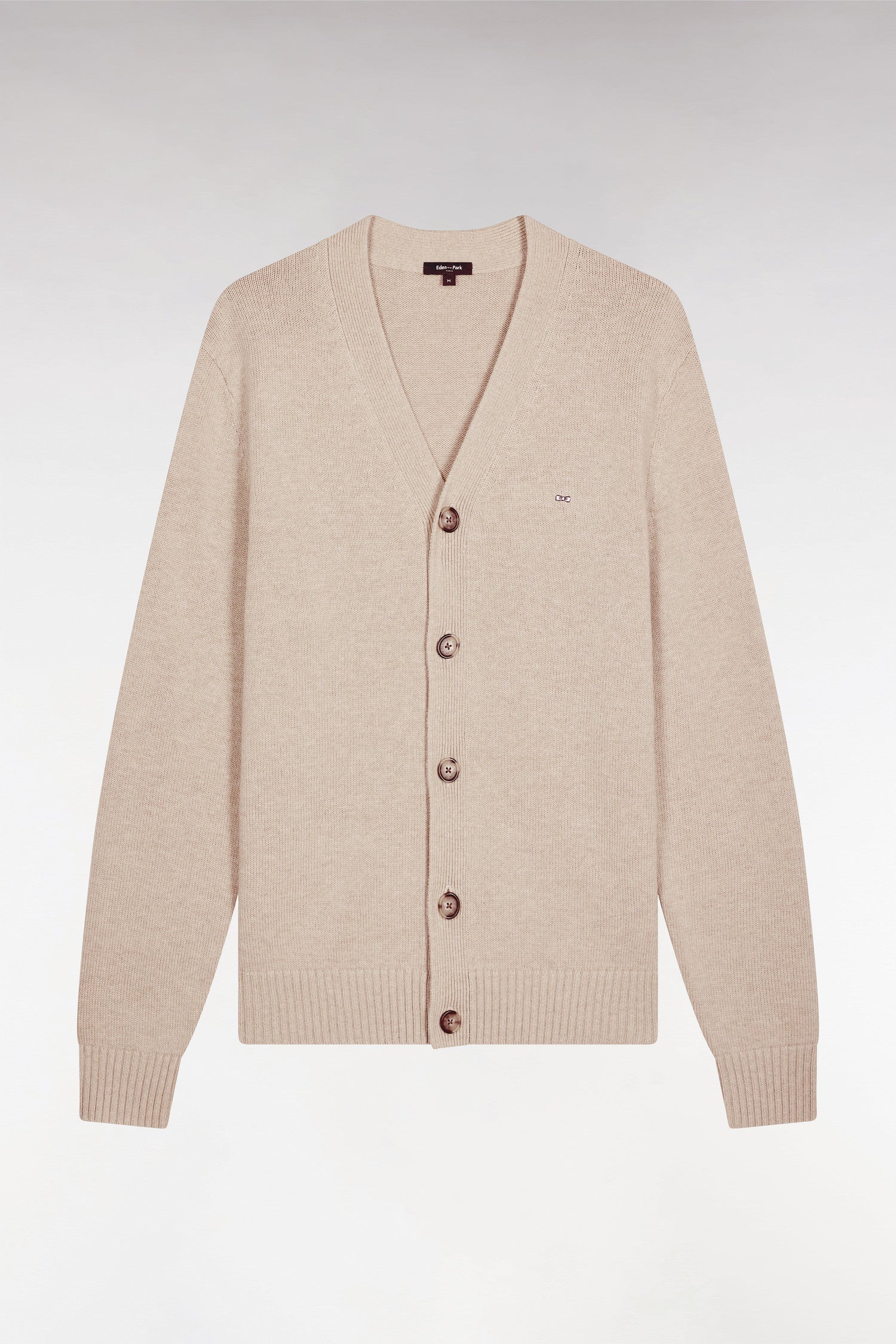 Cardigan en laine et coton beige coupe droite