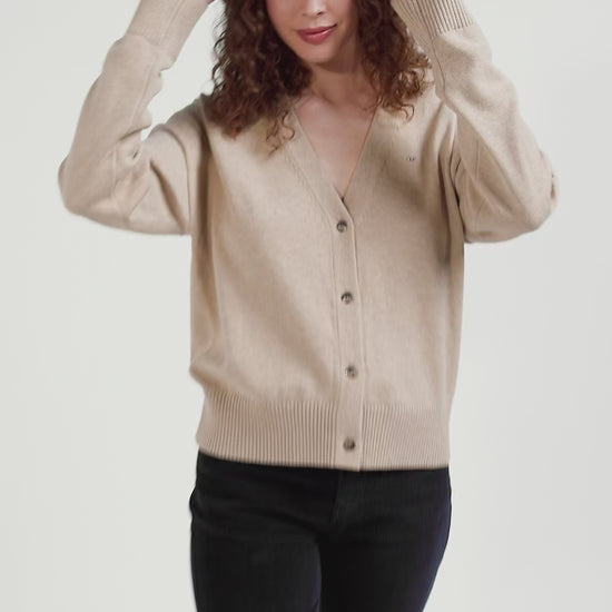 Cet intemporel cardigan en laine et coton est disponible en six coloris indémodables pour s'accorder à tout votre vestiaire automne-hiver. Doté d'un boutonnage classique et d'une encolure en V, ce cardigan légèrement ample pour faciliter vos jeux de superposition est doté de bords-côtes aux manches et à la taille pour une tenue parfaite. C'est un choix sûr pour ajouter une touche de chaleur et de style à votre garde-robe.