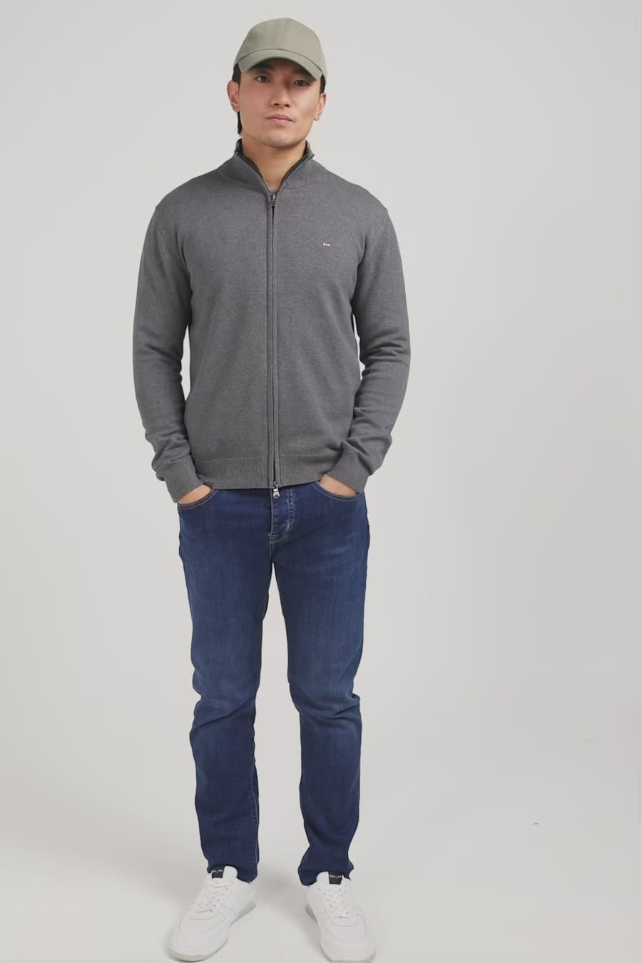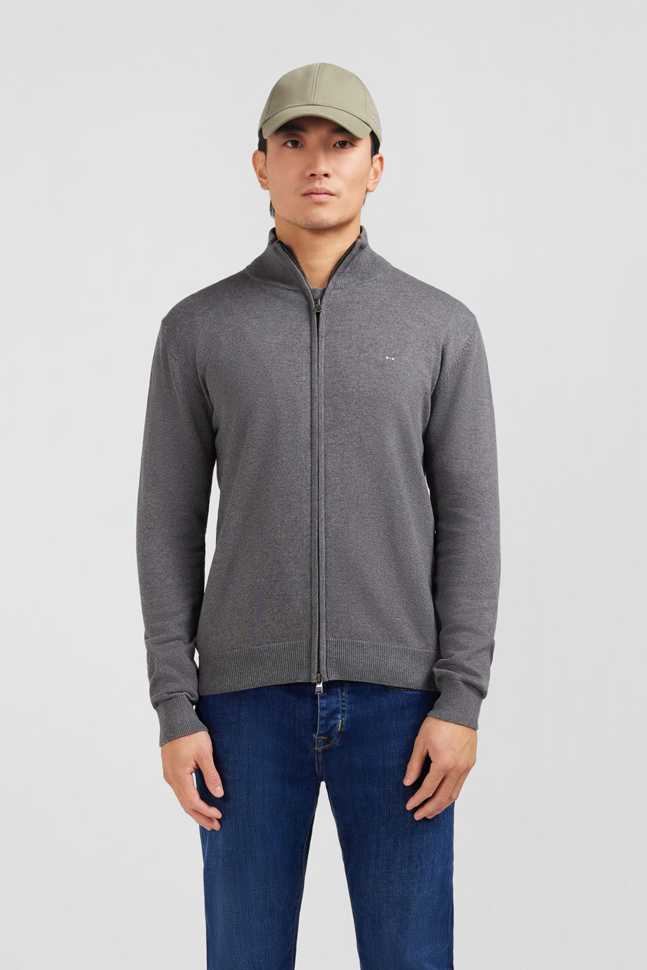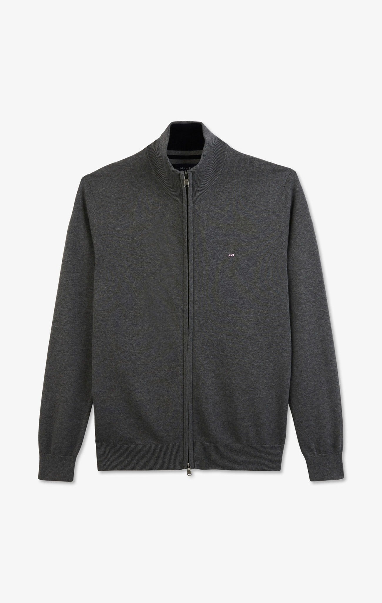 Sobriété et design sportif caractérisent ce cardigan zippé au col enveloppant. Conçu en jersey de coton doux, ce modèle chic et confortable a tout pour faire l'unanimité. Réchauffez cet intemporel au plus fort de l'hiver avec un manteau en laine unie et un bonnet côtelé.