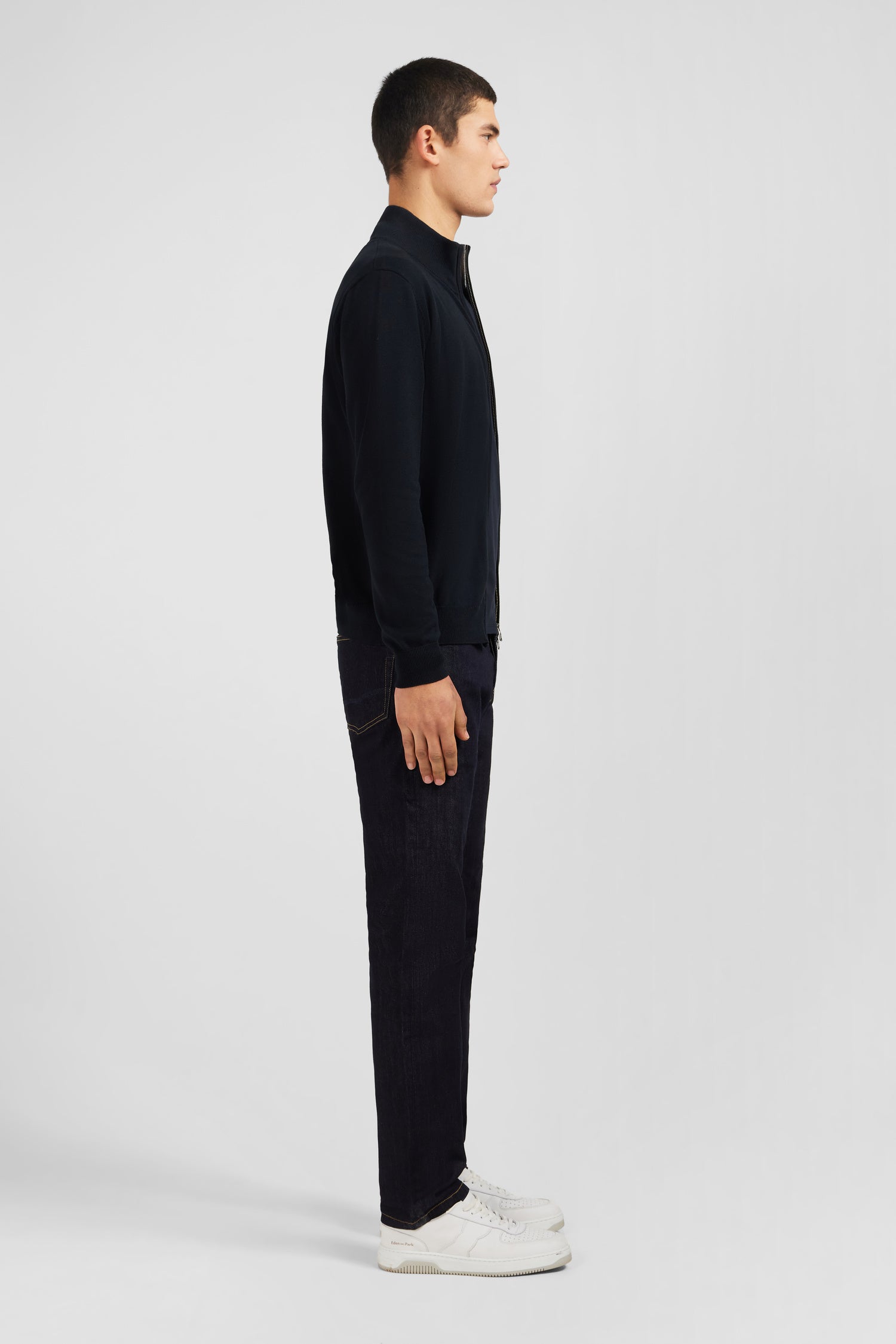 Sobriété et design sportif caractérisent ce cardigan zippé au col enveloppant. Conçu en jersey de coton doux, ce modèle chic et confortable a tout pour faire l'unanimité. Réchauffez cet intemporel au plus fort de l'hiver avec un manteau en laine unie et un bonnet côtelé.