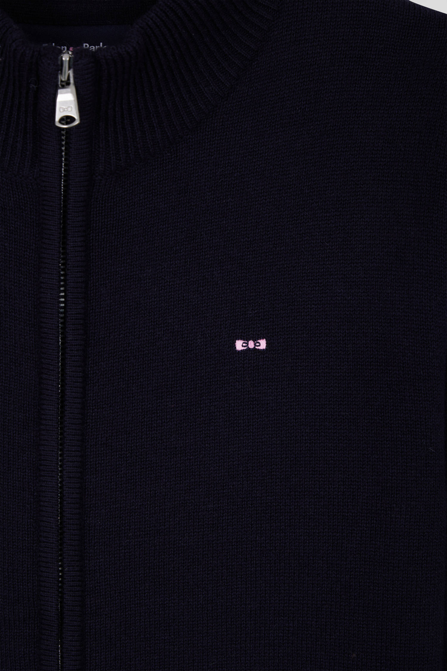 Cardigan zippé à col montant en laine et coton marine coupe Regular
