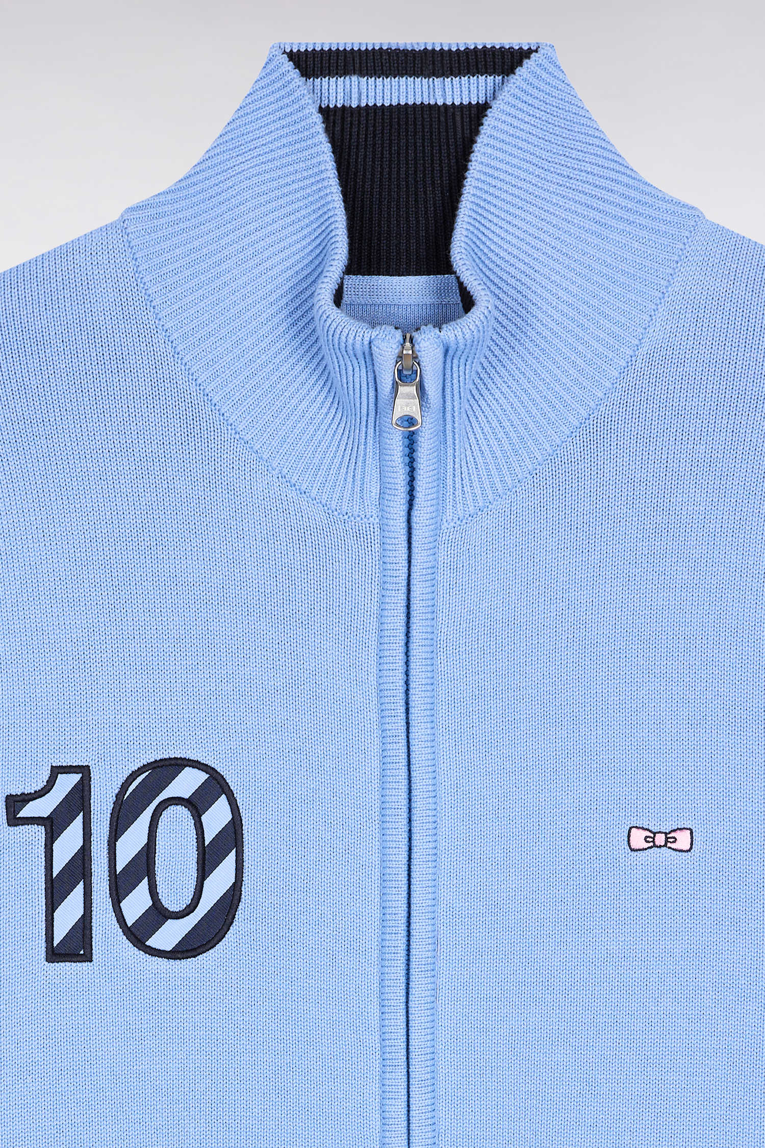 Cardigan zippé en coton marine broderie 10 ciel coupe droite