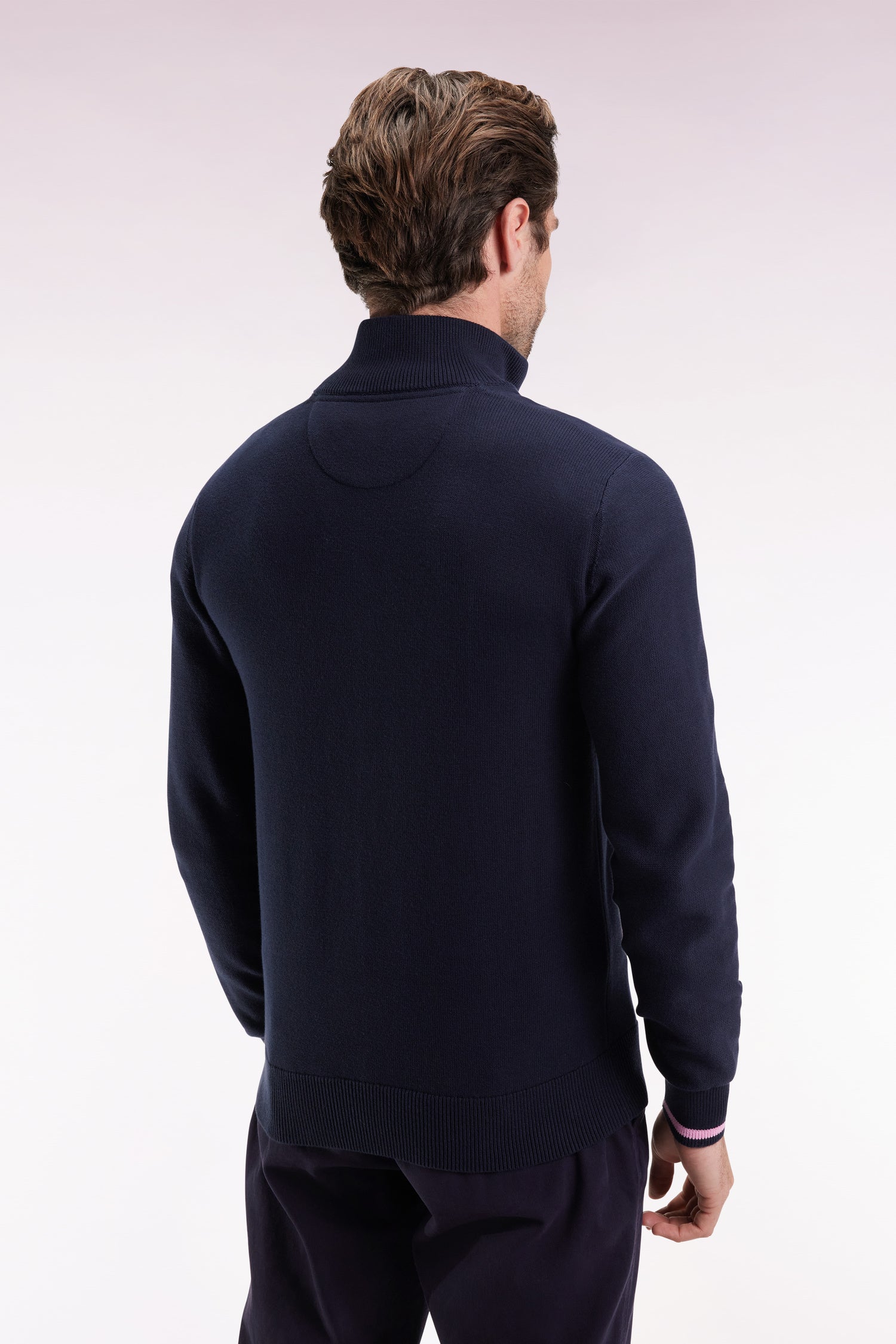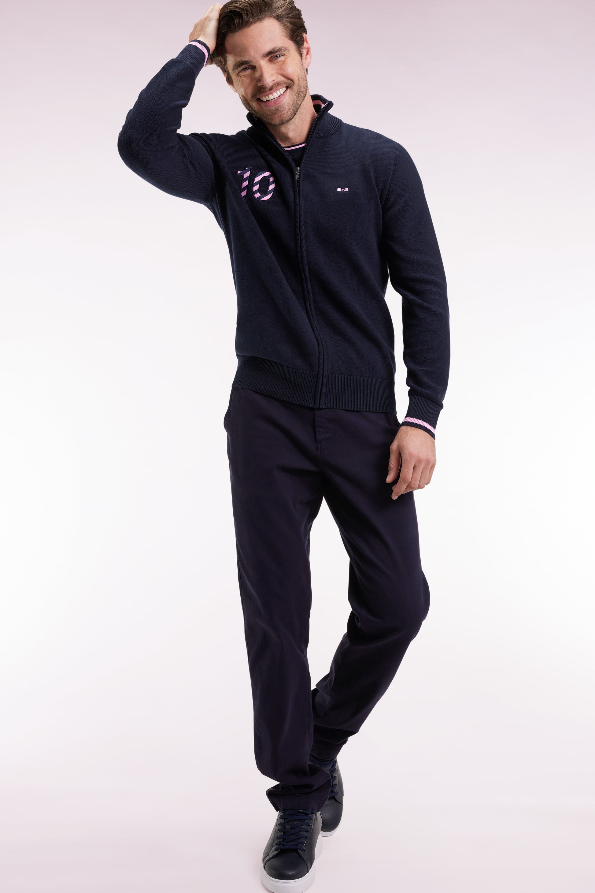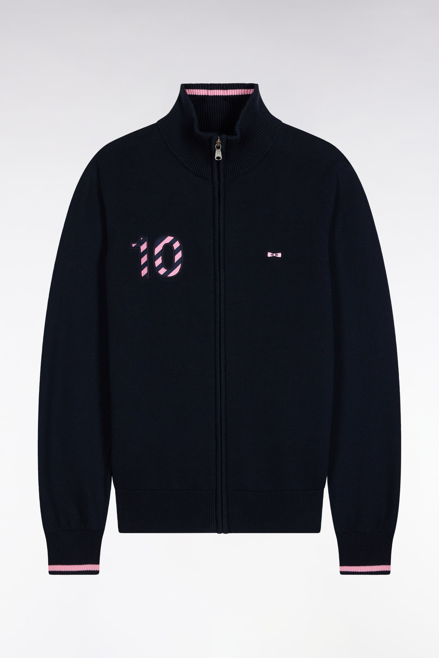 Cardigan zippé en coton marine broderie 10 marine coupe droite