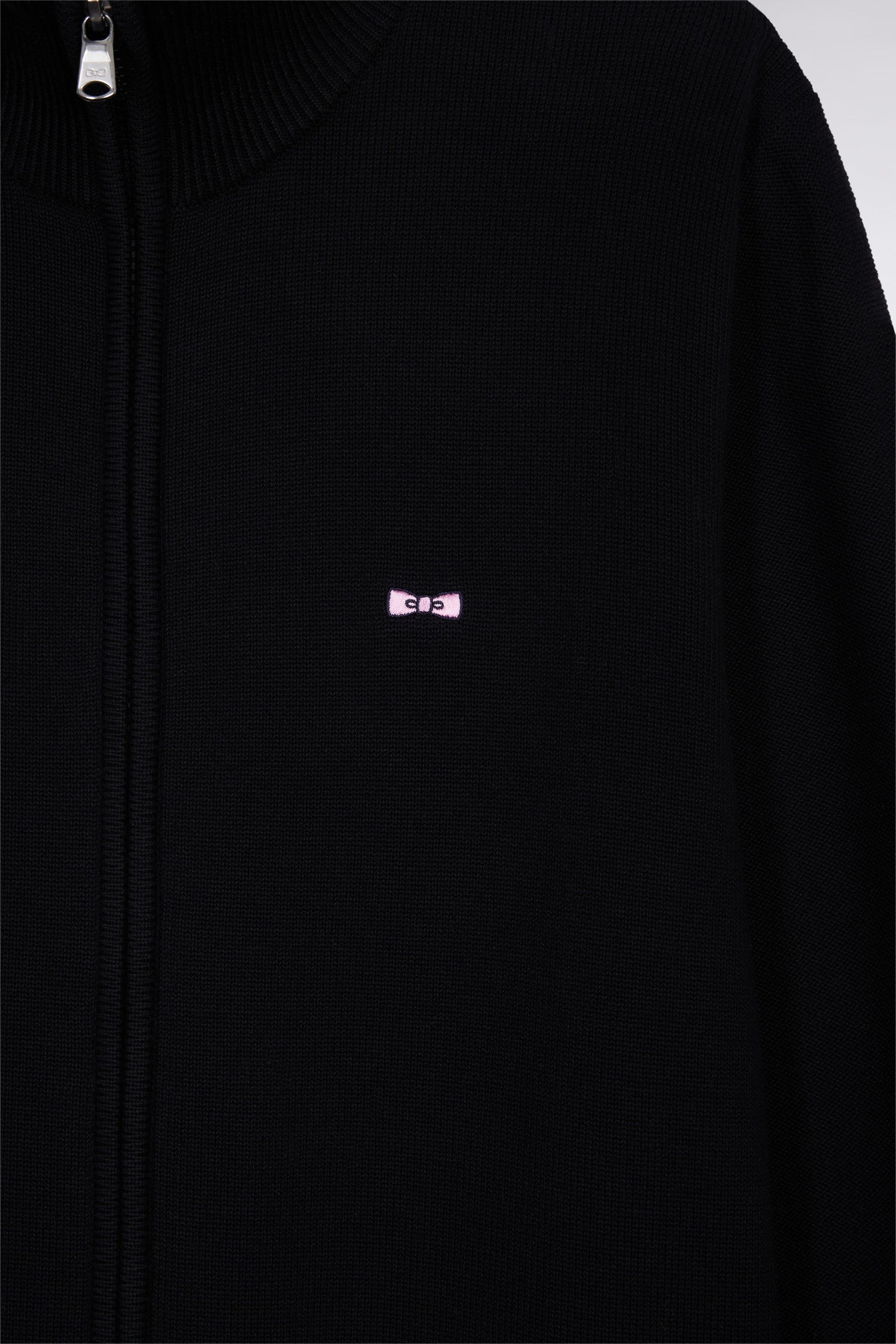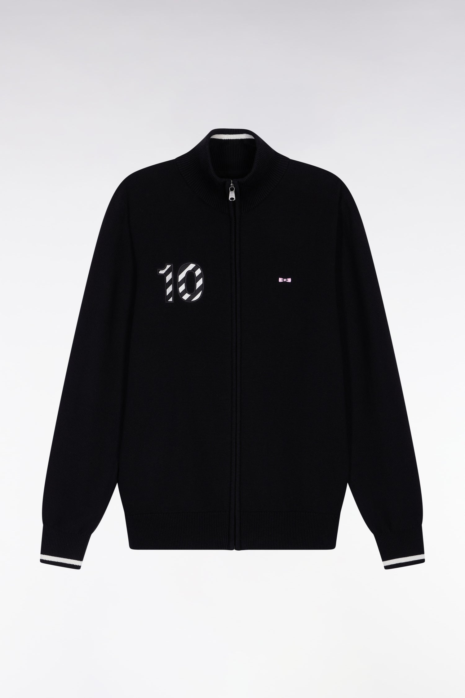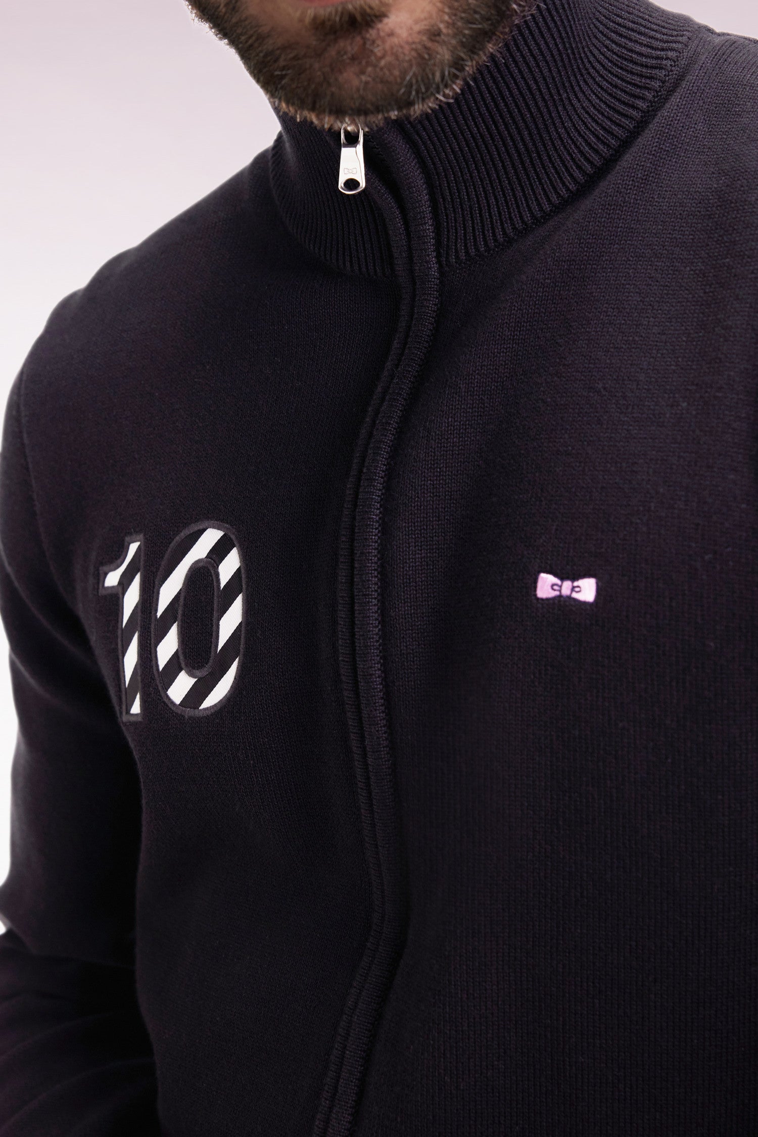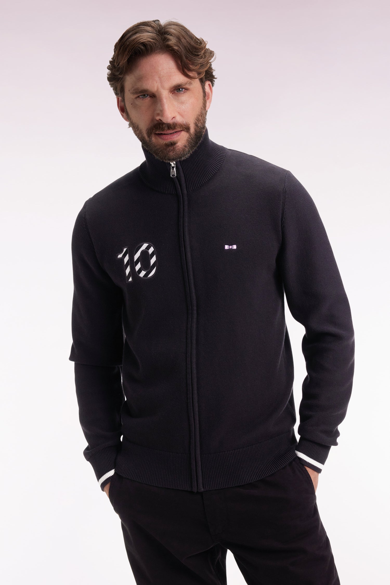 Cardigan zippé en coton marine broderie 10 noir coupe droite