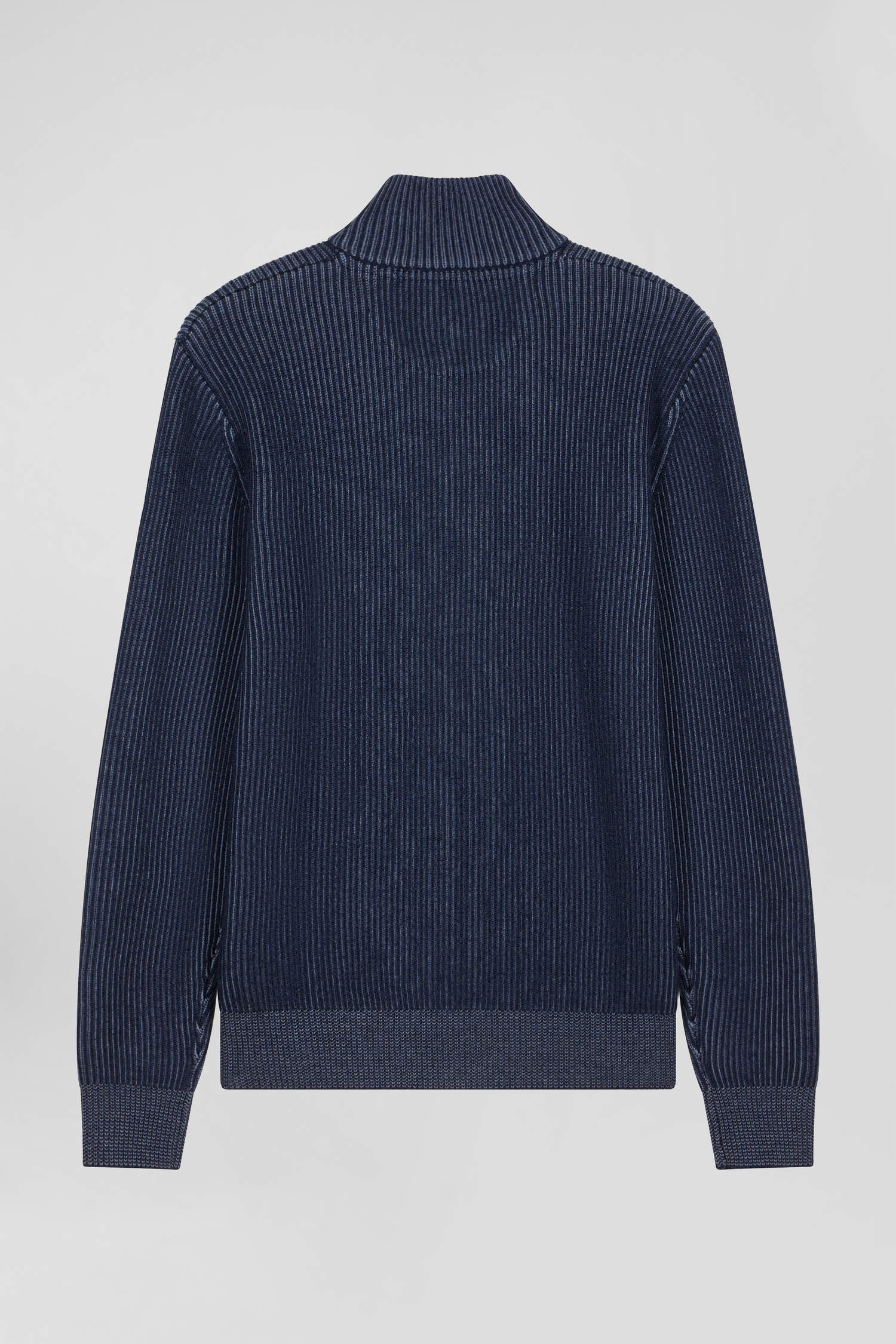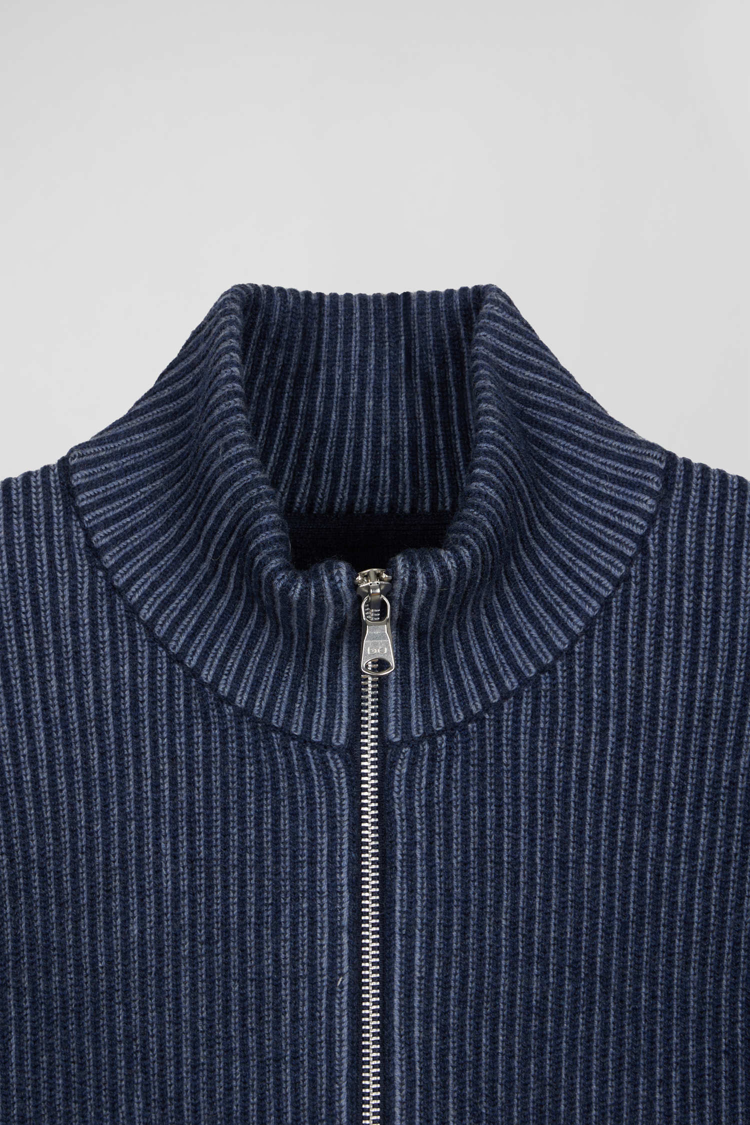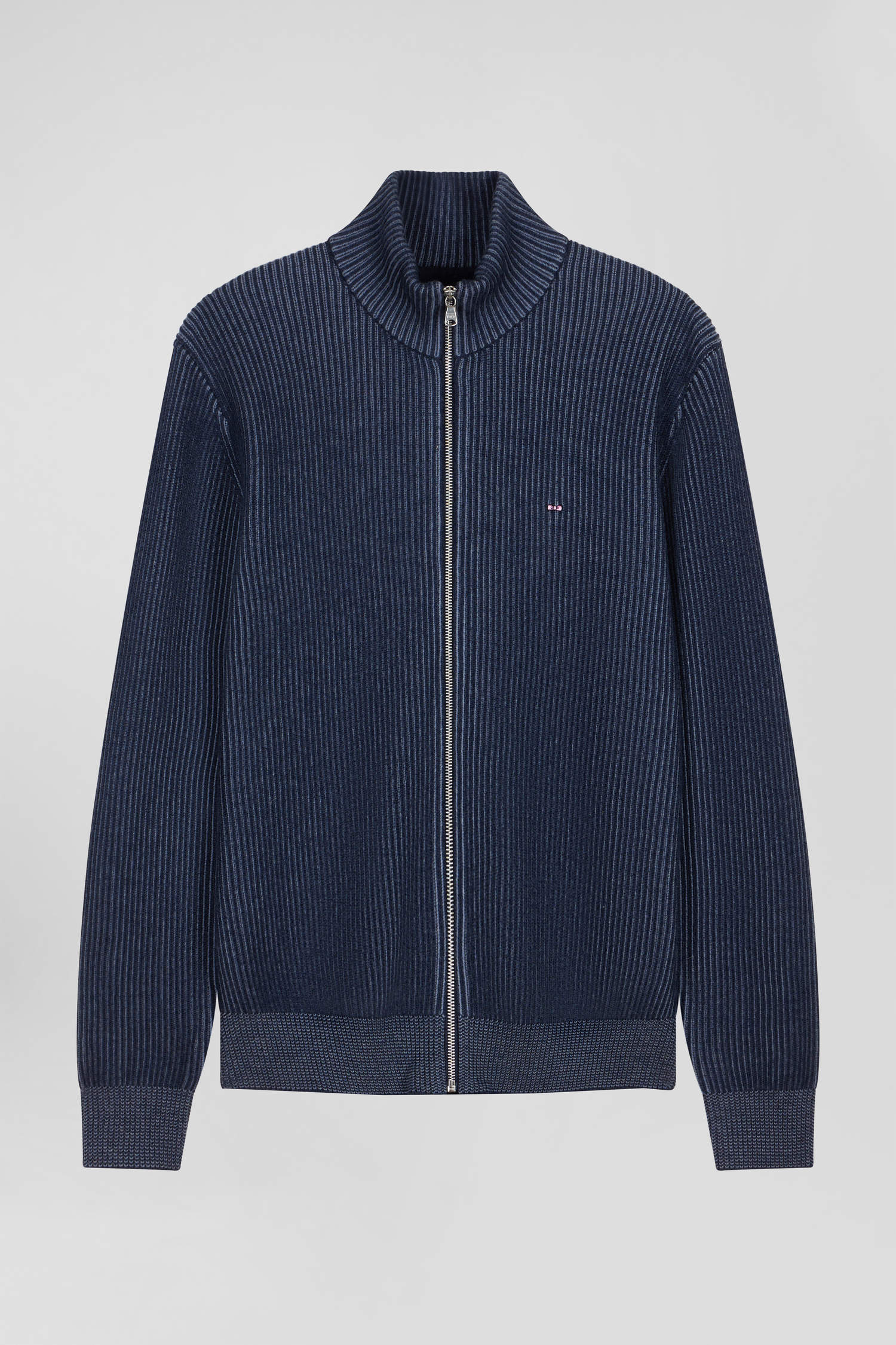 Cardigan zippé en laine et coton bleu marine coupe Regular