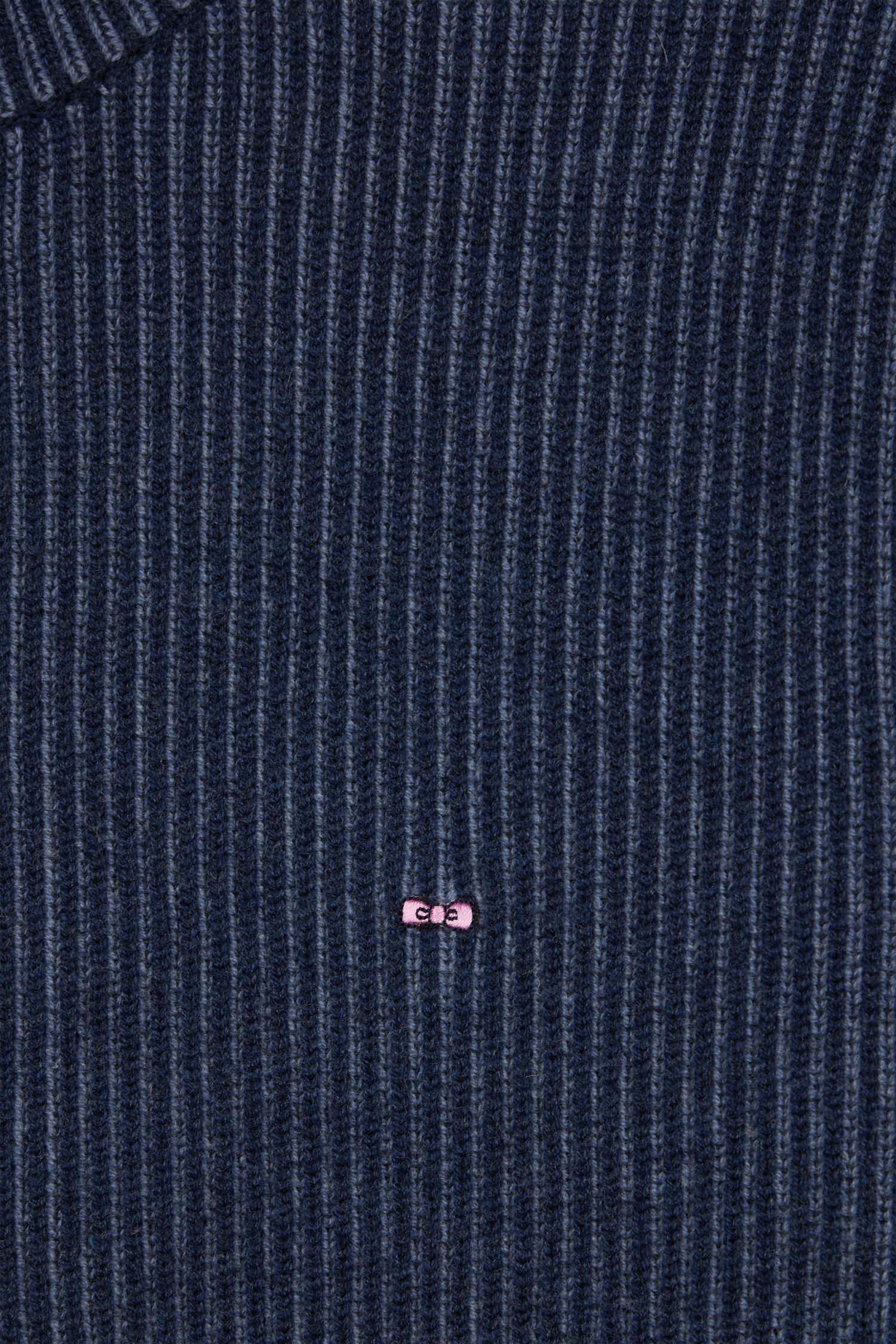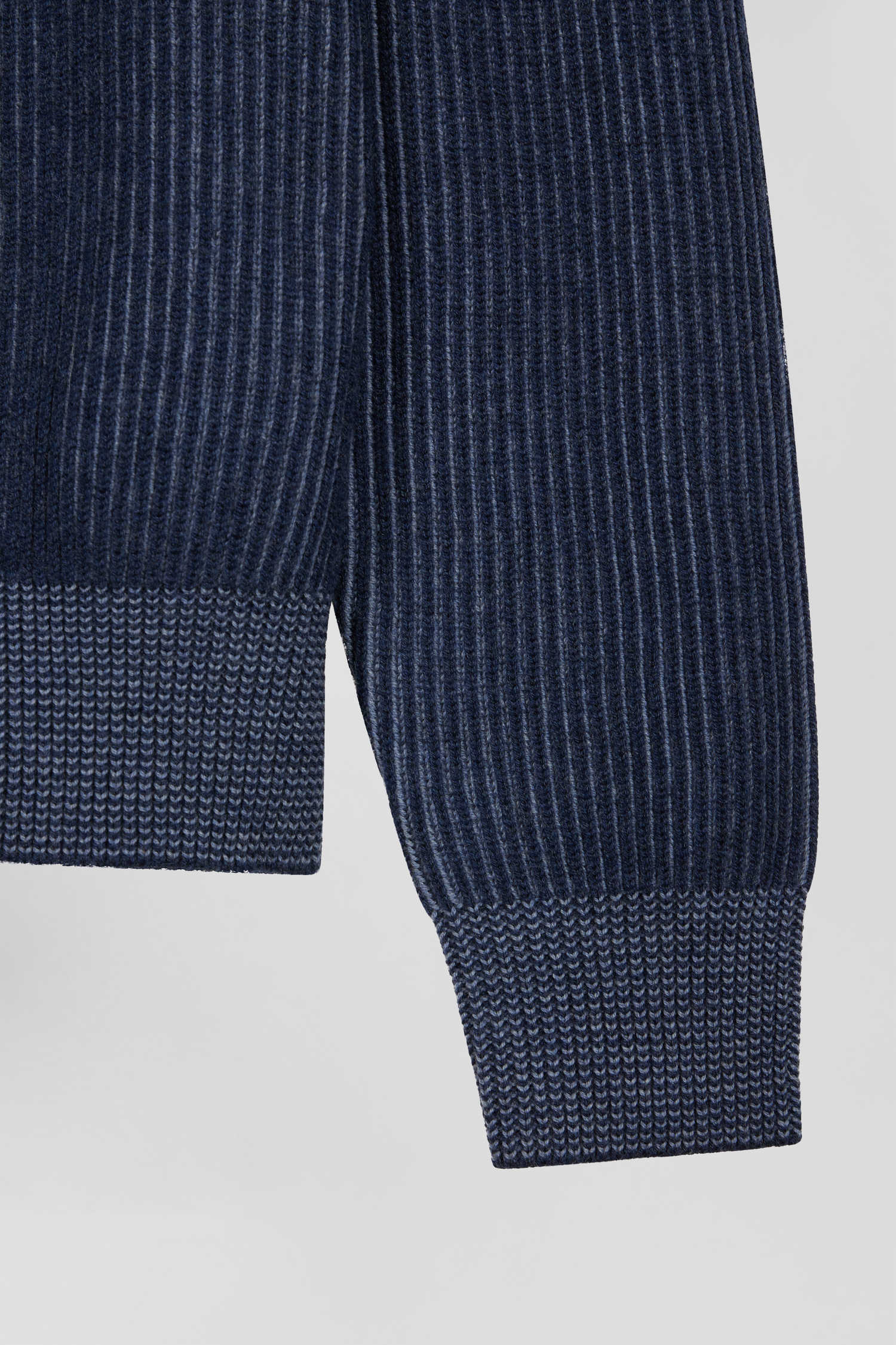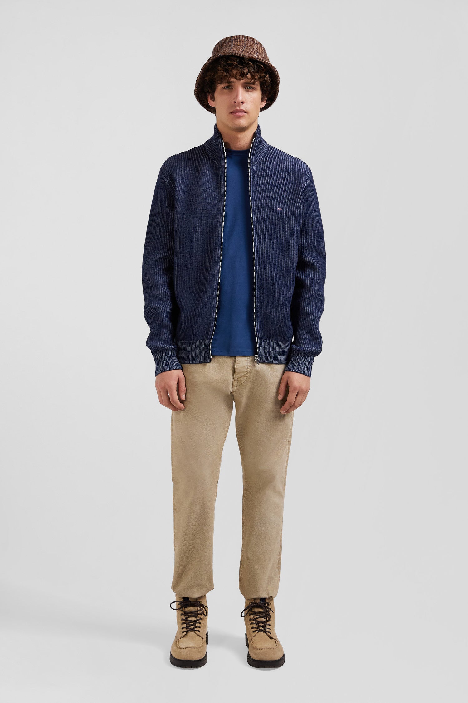 Cardigan zippé en laine et coton bleu marine coupe Regular