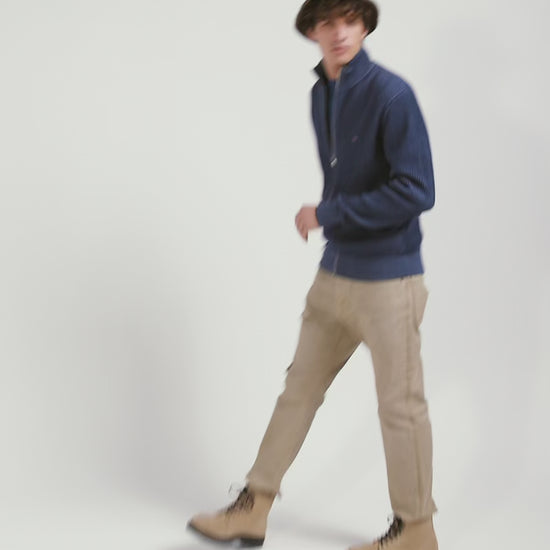 Notre cardigan pour homme zippé, alliant laine et coton, offre un confort de porté optimal. Sa coupe Regular droite et son zip gris sont mis en valeur par un tricotage créant un effet de rayures verticales, pour un style moderne aux inspirations sportives. Offert dans trois coloris intemporels, ce cardigan zippé s'accorde parfaitement au vestiaire masculin imaginé par Eden Park pour l'automne-hiver.