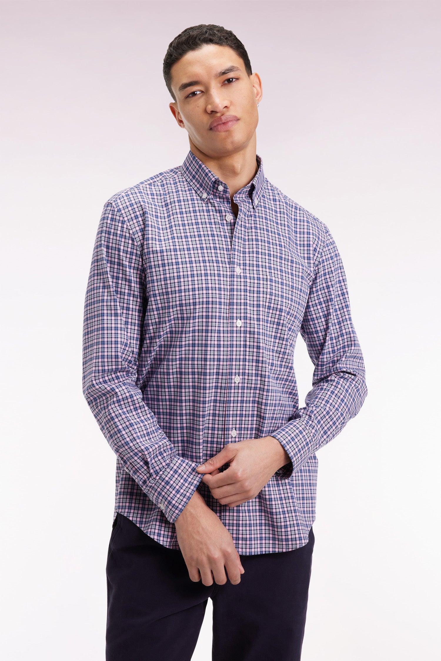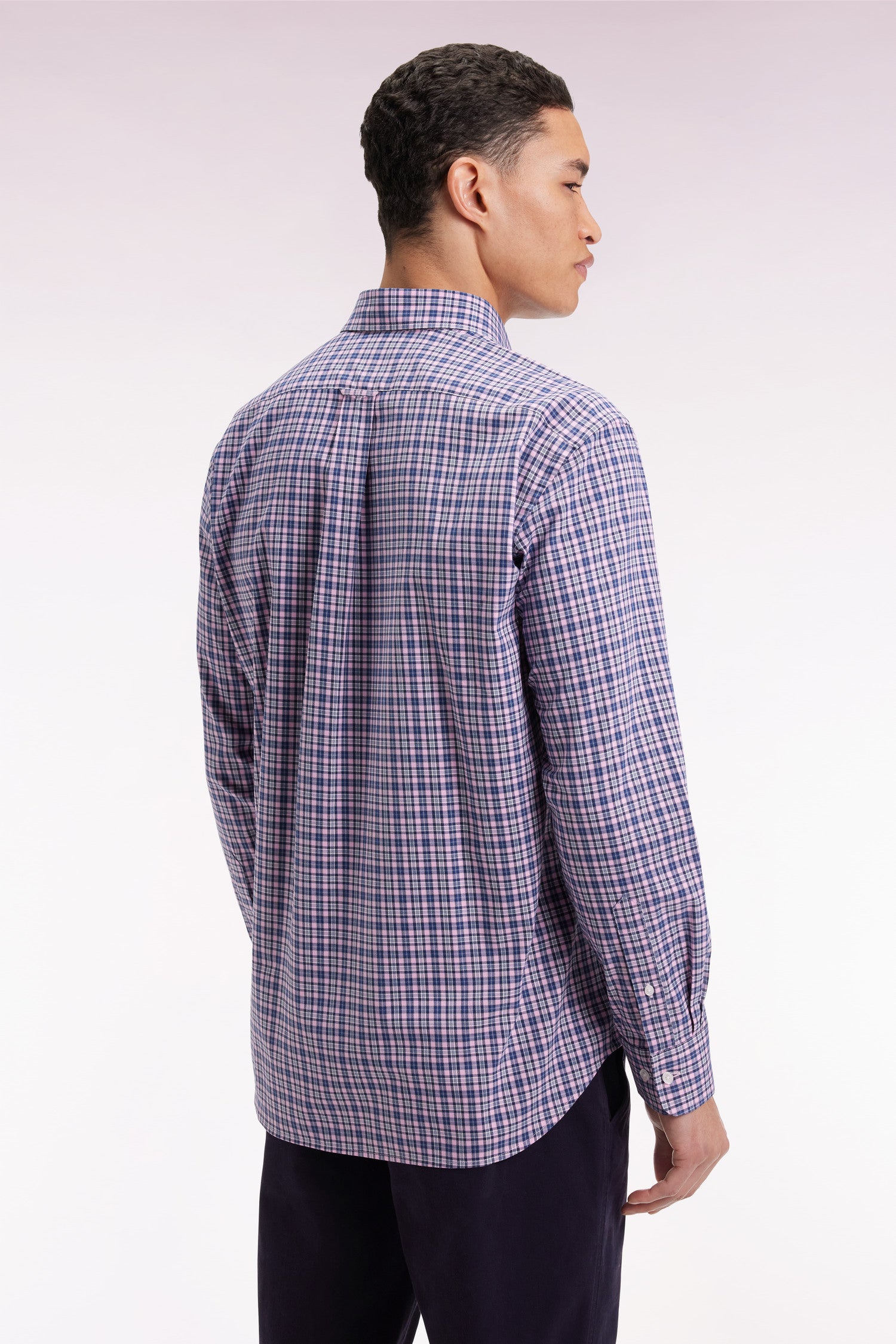 Cette chemise masculine à carreaux, déclinée en popeline de coton marine ponctuée de beige ou de rose, offre une élégance naturelle et discrète. Sa coupe droite et son coton doux en font une pièce confortable, idéale pour structurer une tenue décontractée avec allure