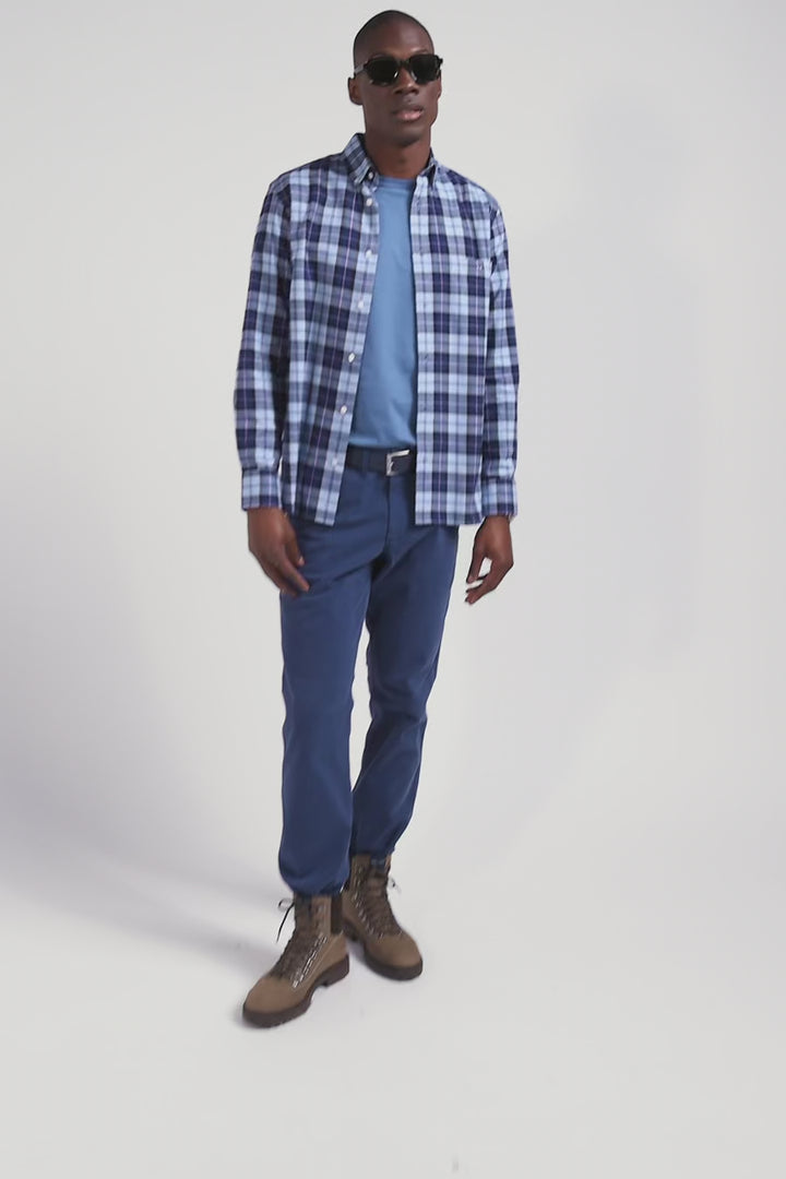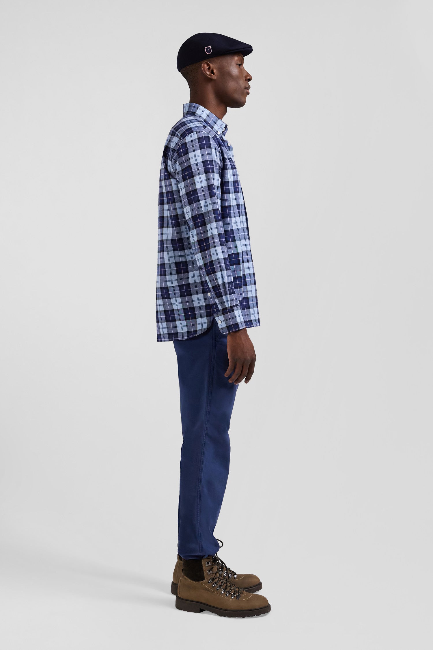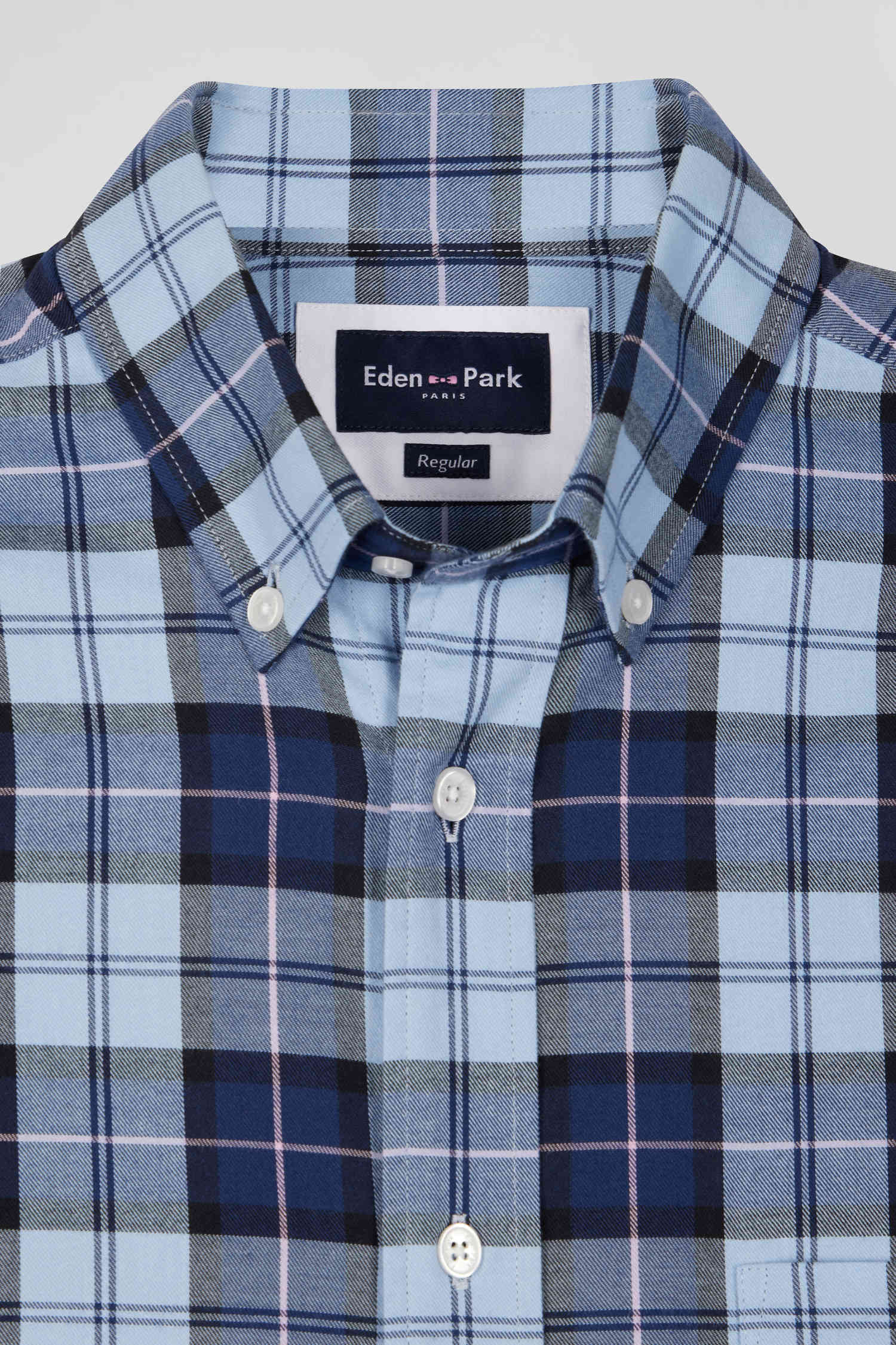 Chemise à carreaux en twill de coton ciel coupe Regular