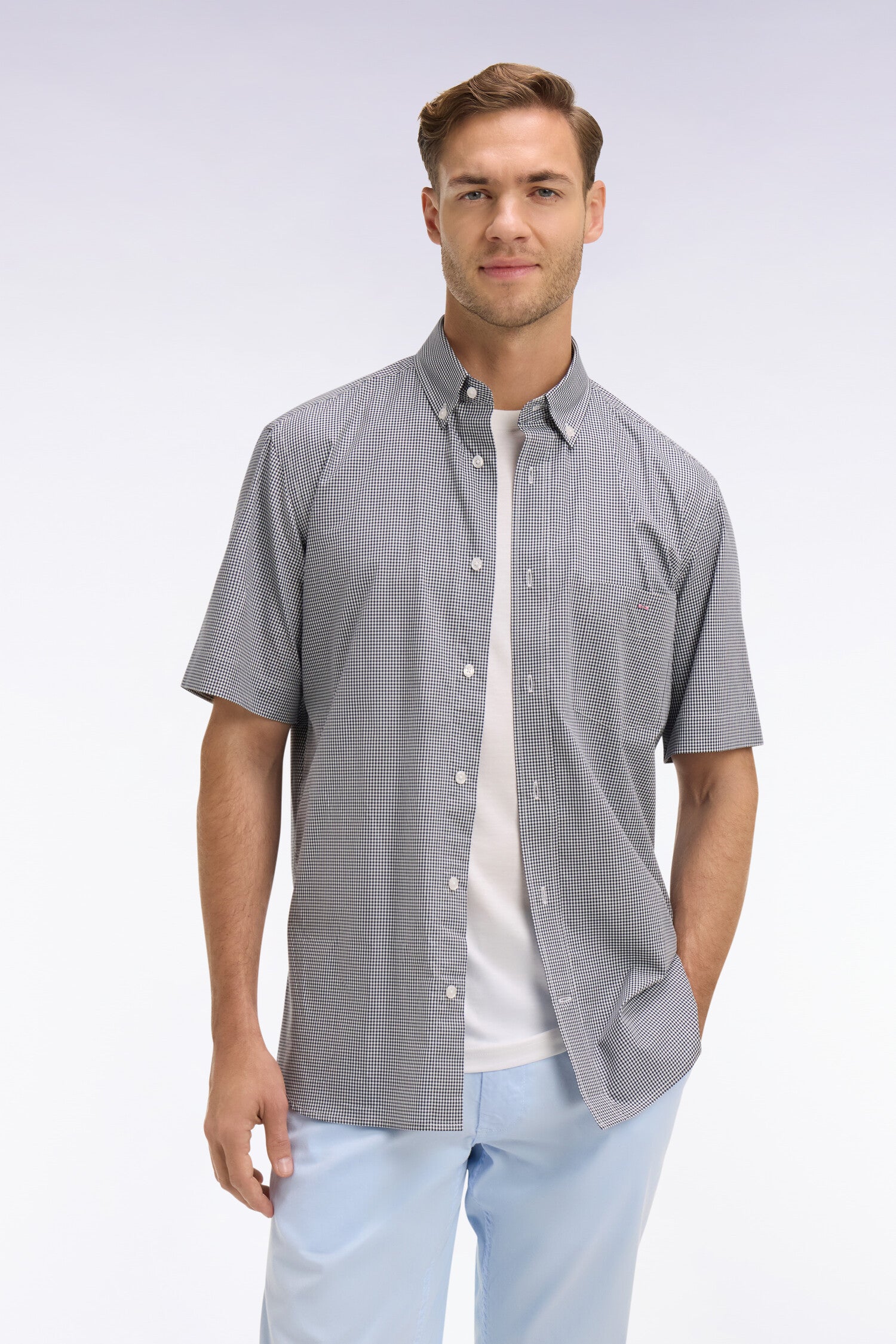 Chemise à manches courtes en coton à carreaux Vichy marine