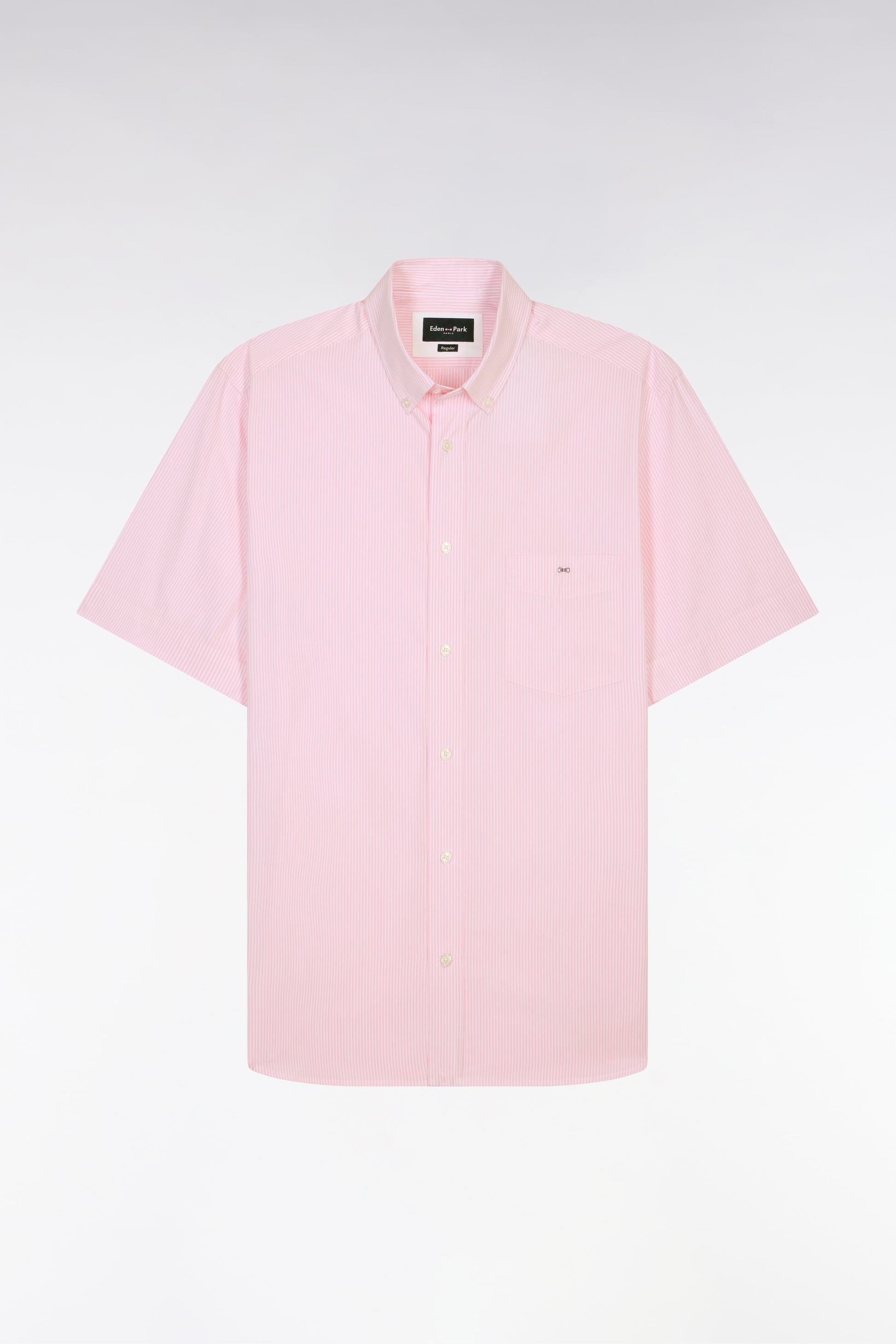 Chemise à manches courtes en coton à rayures bâtons rose