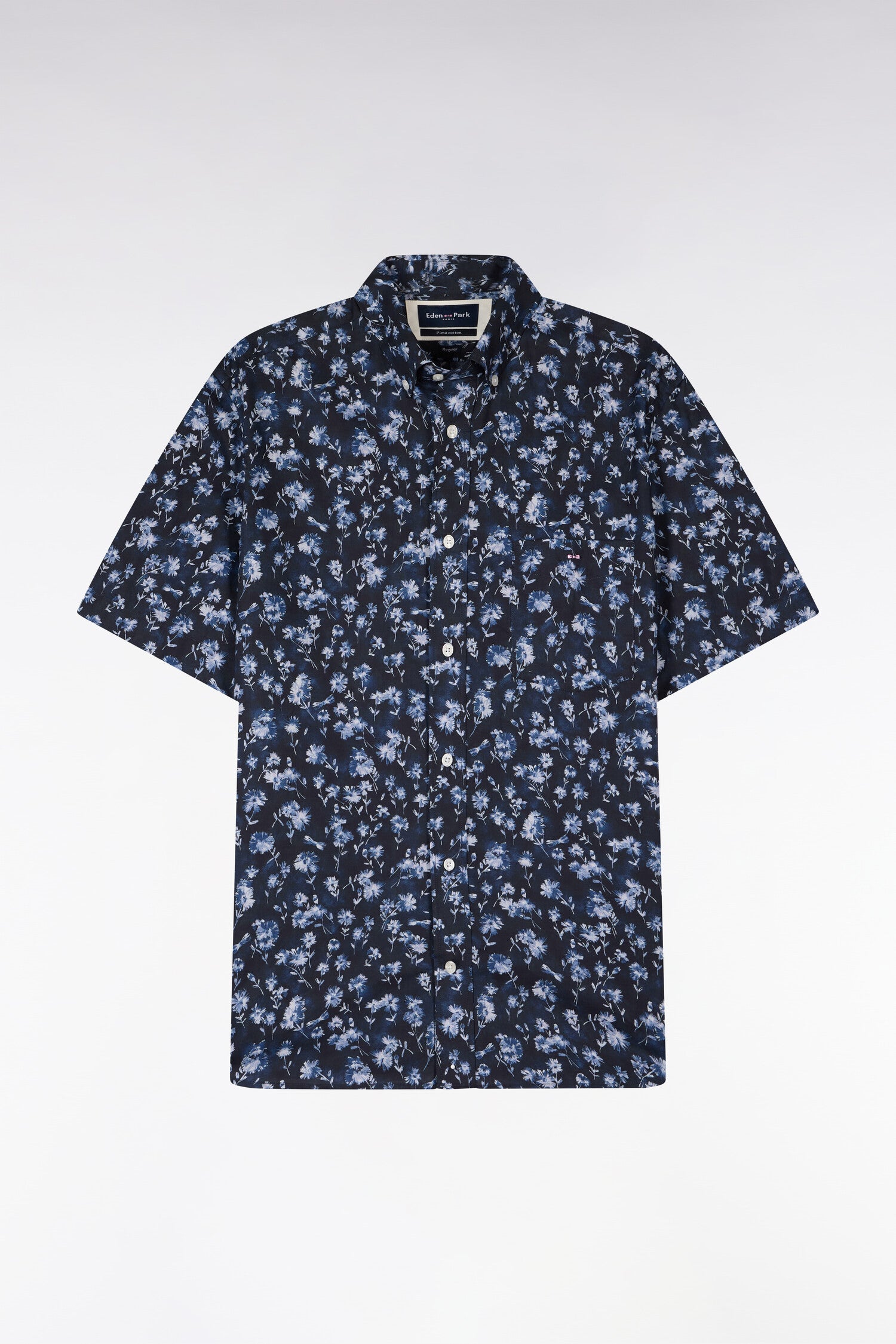 Chemise à manches courtes en coton Pima marine à motif floral