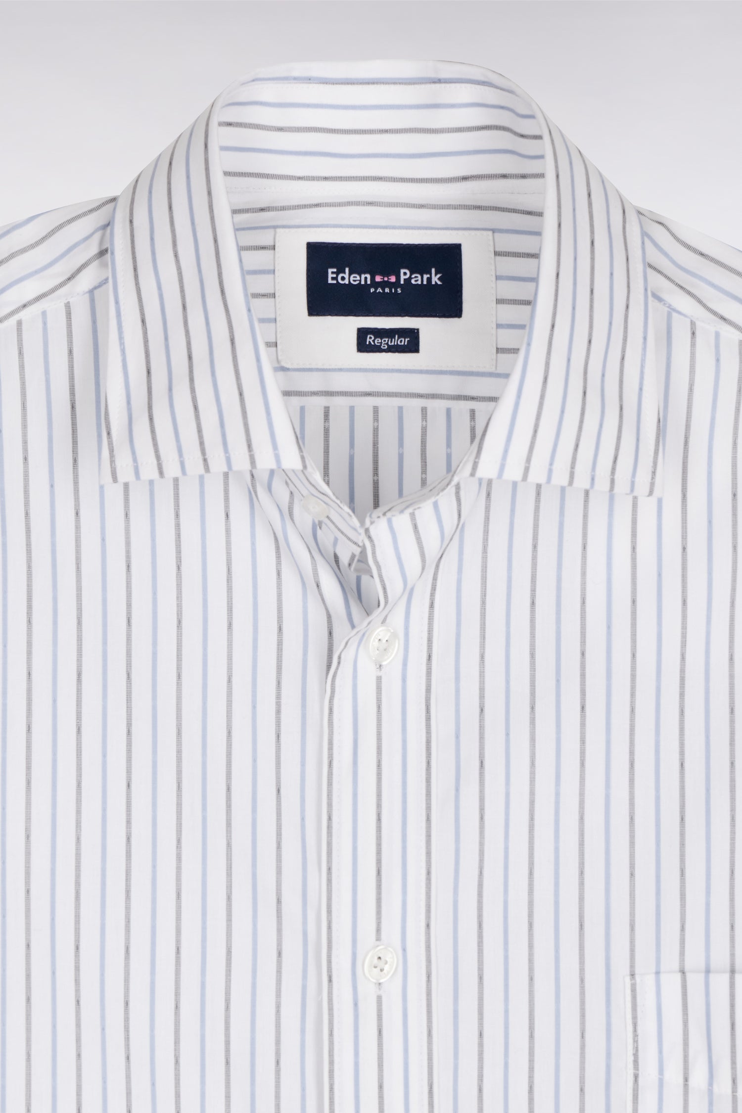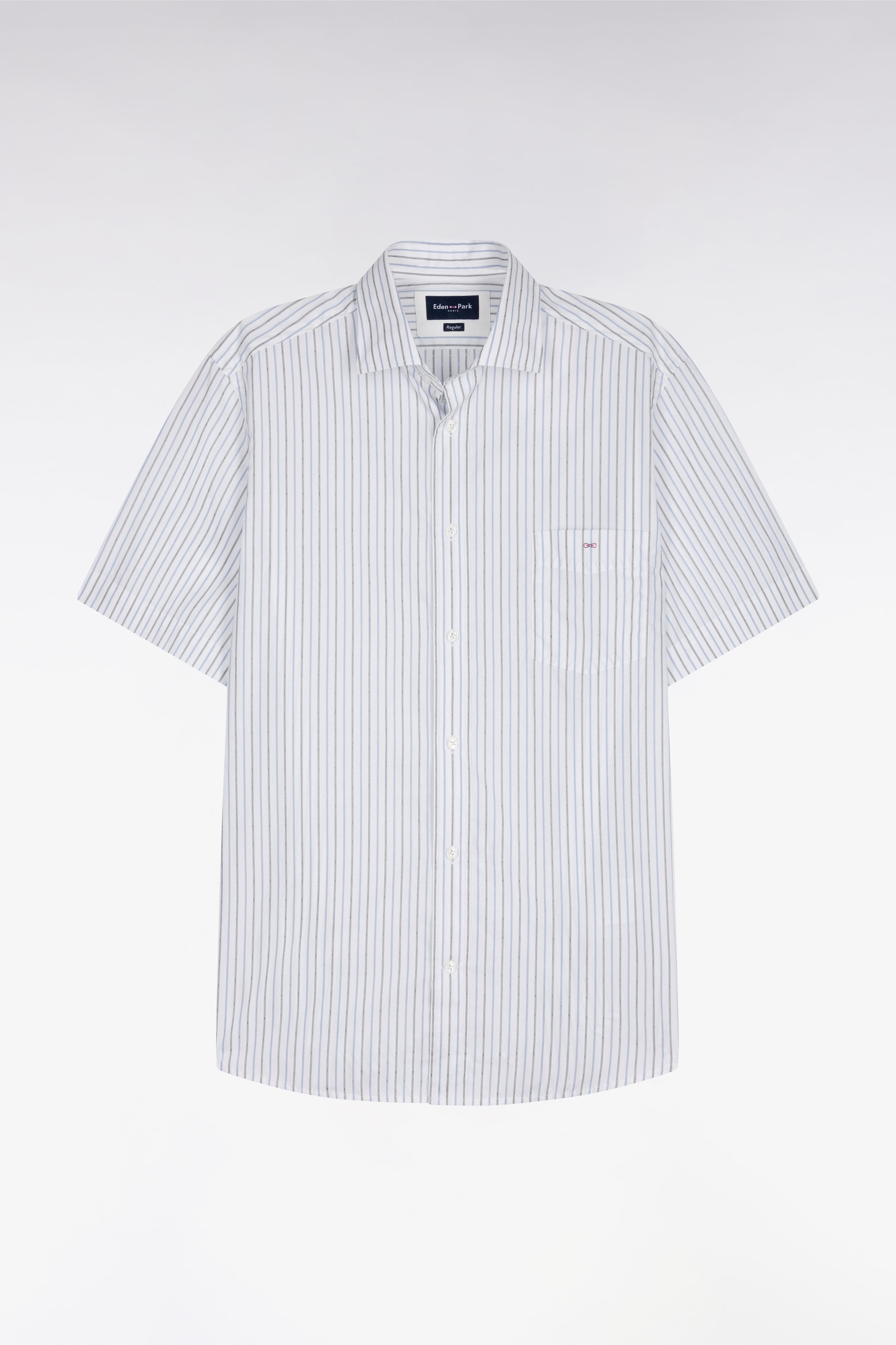 Chemise à manches courtes en dobby de coton rayé bleu ciel