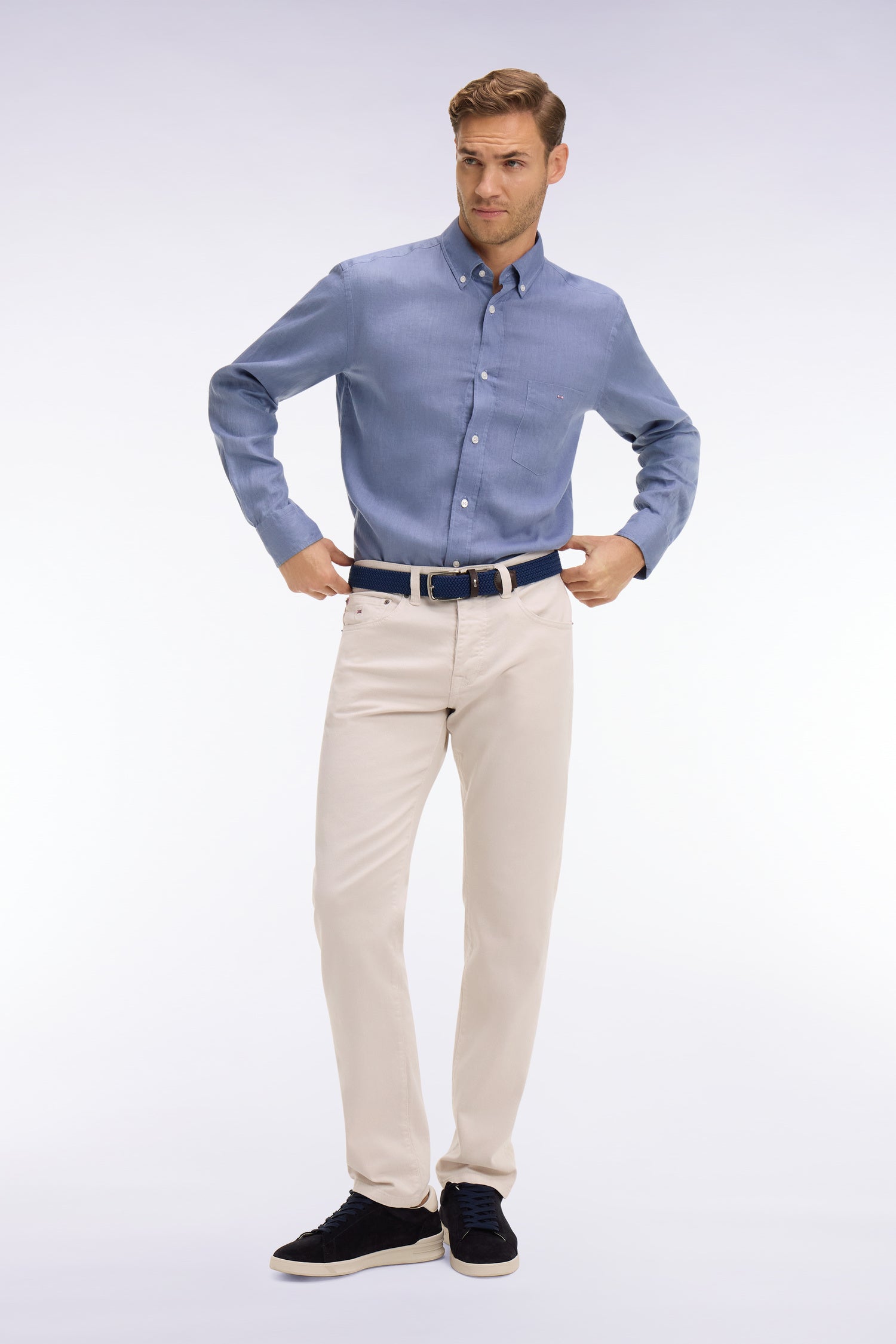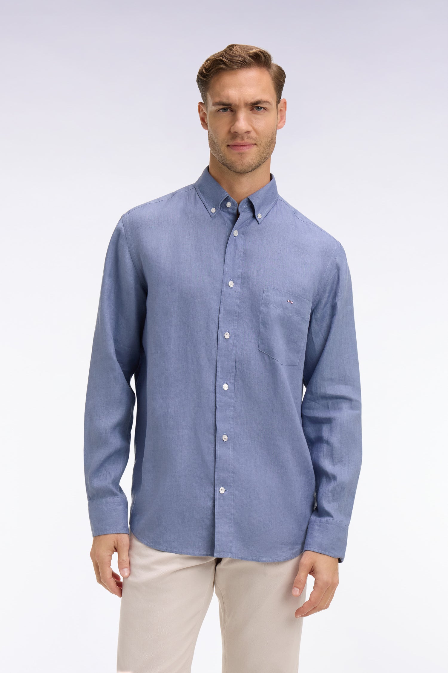 Chemise en lin bleu coupe droite