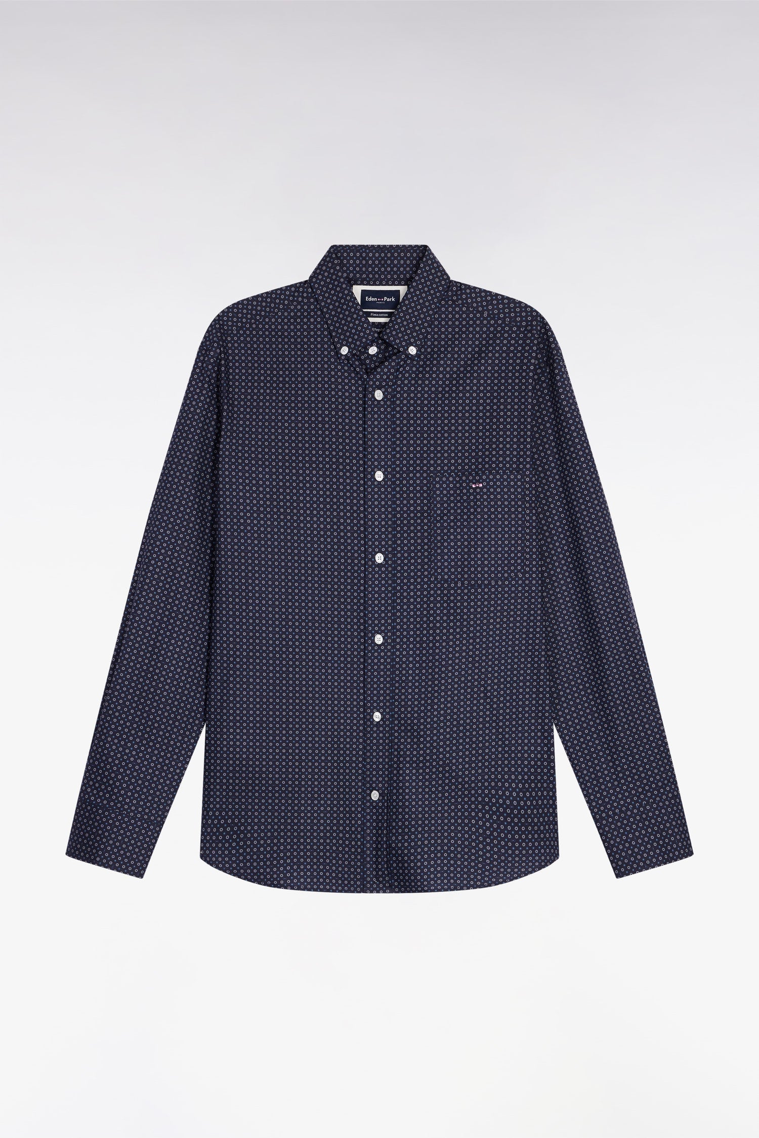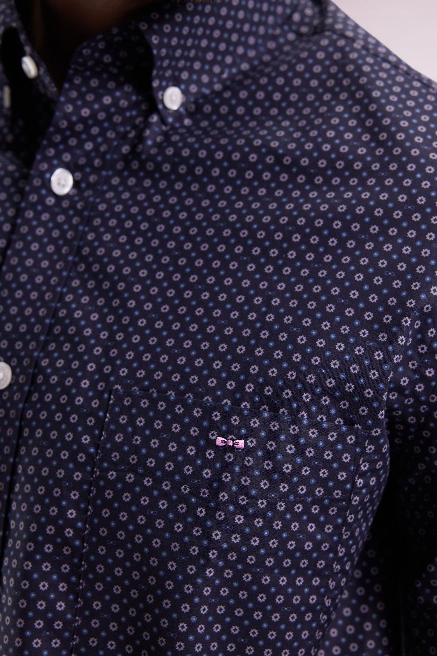 Cette élégante chemise en coton adopte un micro-imprimé exclusif à Eden Park pour une allure graphique et un style qui ne ressemble à aucun autre. Sa coupe droite regular et son col boutonné assurent un tombé impeccable. Broderie nœud papillon rose sur la poitrine et finitions soignées viennent parfaire ce modèle à la touche French Flair