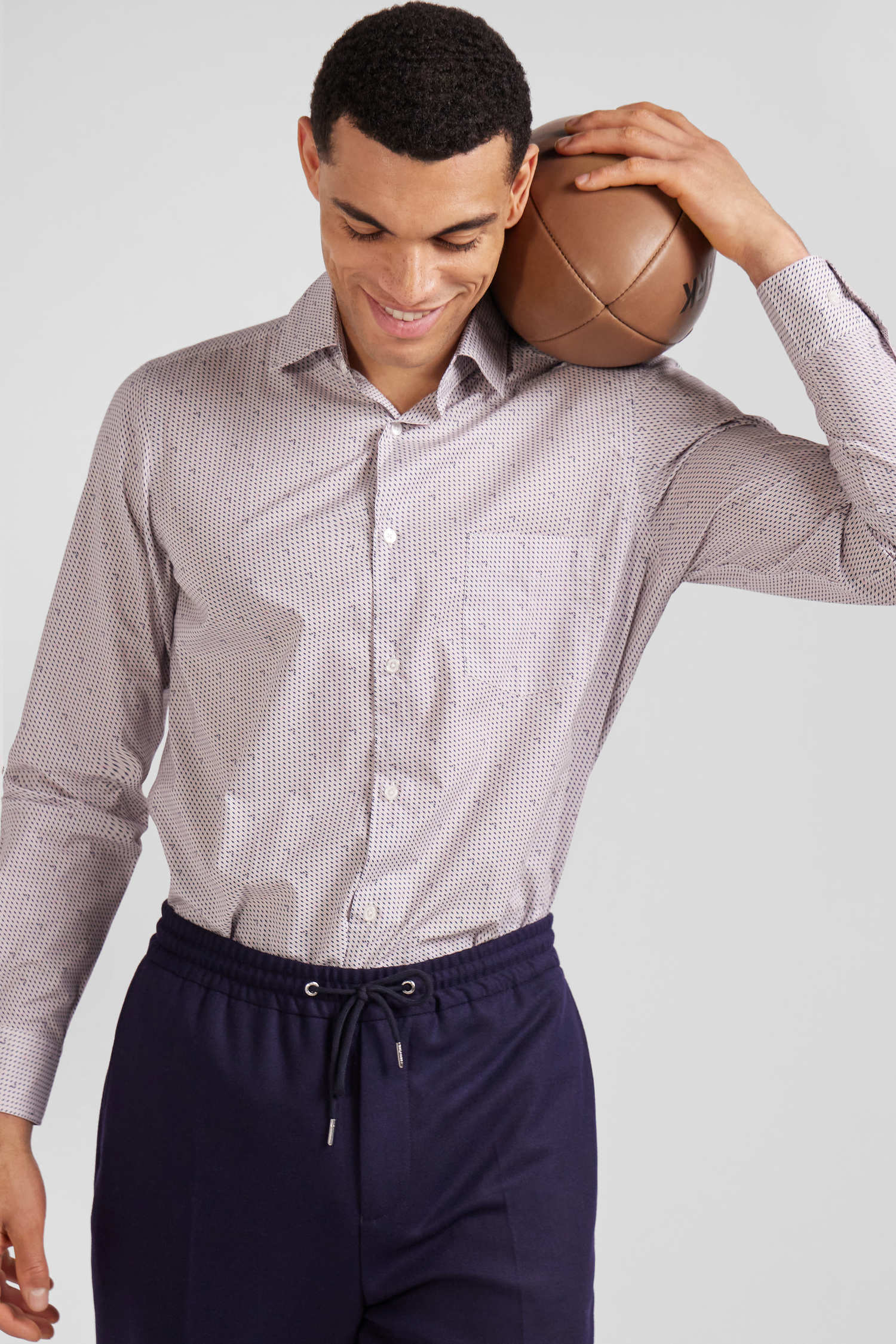 Cette chemise coupe slim en coton rose est rehaussée de micro-motifs graphiques pour une touche contemporaine. Avec sa poche poitrine et sa coupe ajustée, cette chemise homme facile à porter propose un style à la fois sophistiqué et tendance pour le quotidien ou une occasion plus habillée.