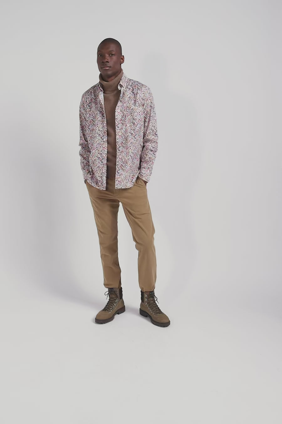 Au fil de nos collections, les chemises masculines à micro-motifs sont devenues des pièces emblématiques de l'esprit French Flair de notre marque française. Chaque imprimé exclusivement développé pour notre Maison présente de manière discrète notre emblématique nœud papillon mêlé à des motifs floraux ou graphiques. Pour cette chemise homme, tendance et élégante à l'imprimé soigné nous avons opté pour une popeline de coton et plus particulièrement pour un luxueux tissu italien doux au porté.