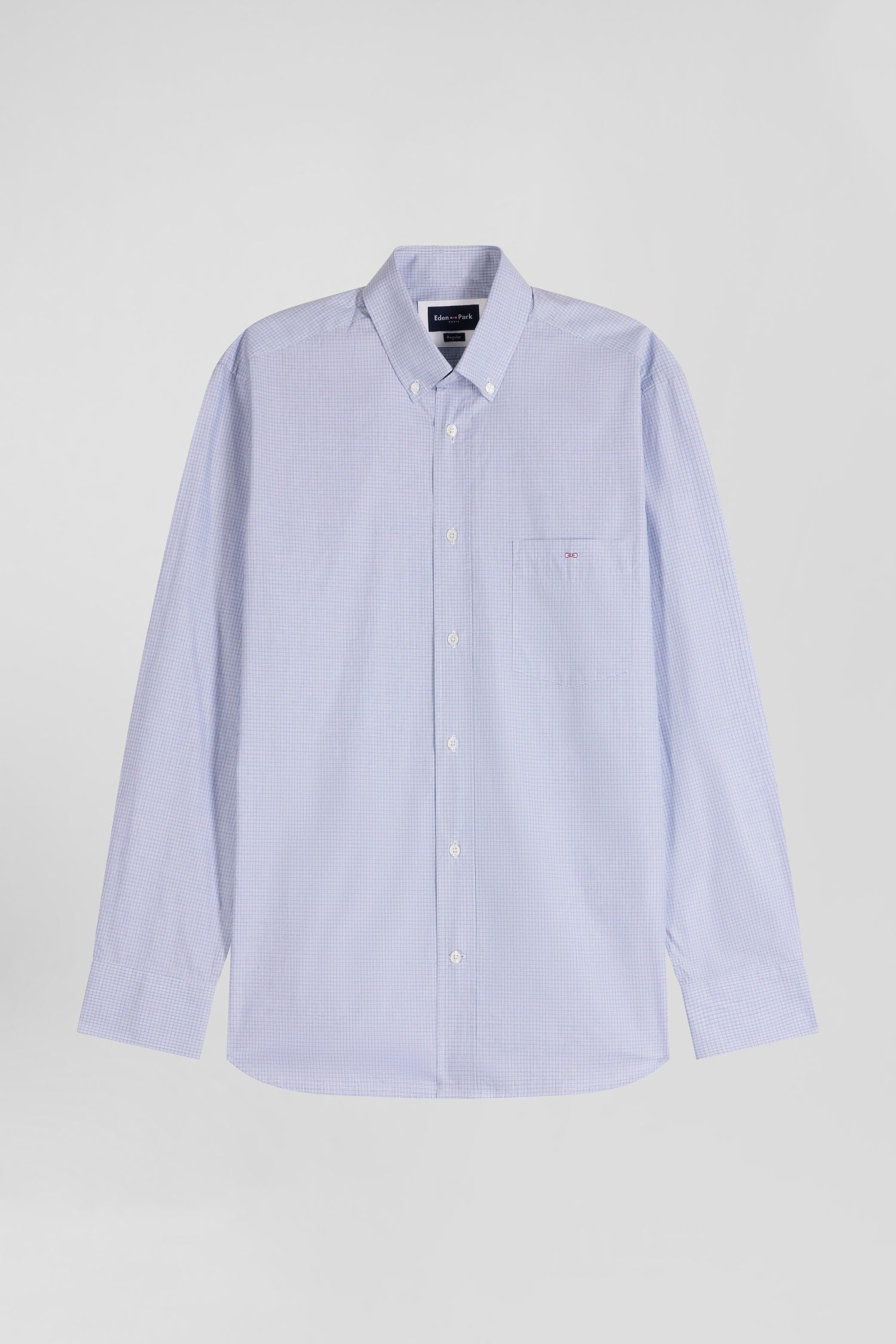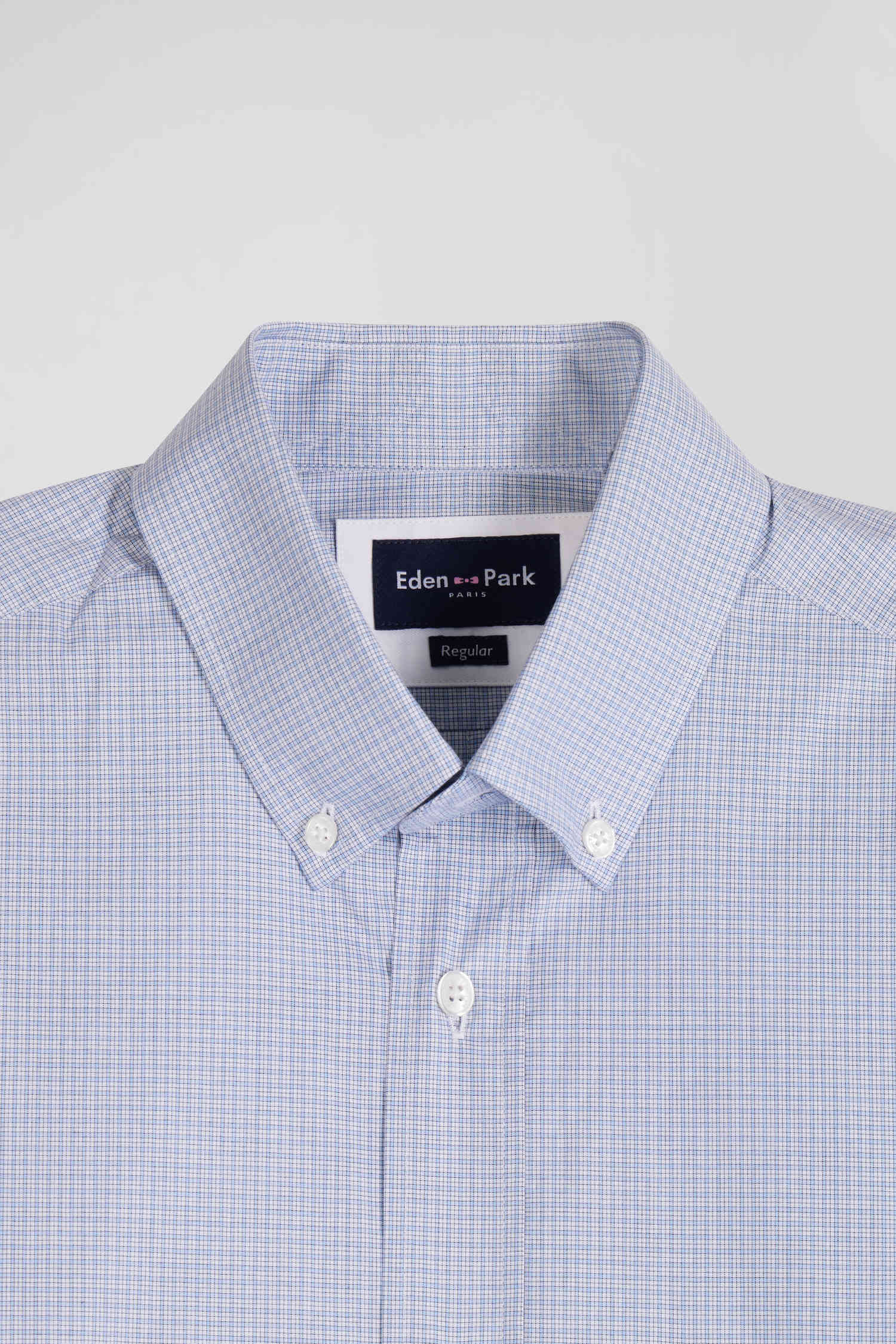 Chemise en coton ciel à micro-carreaux coupe Regular