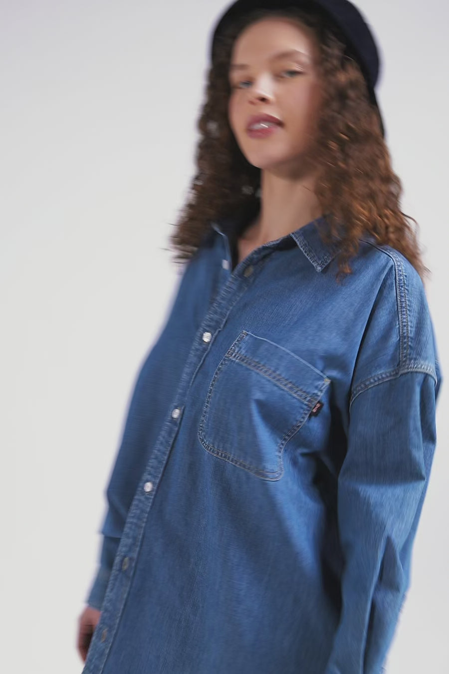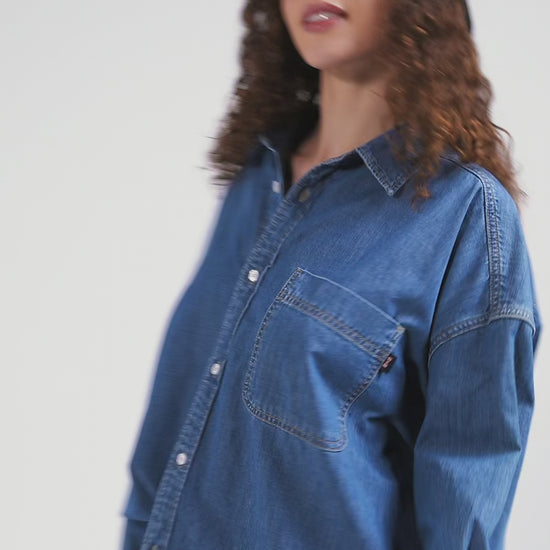 Réalisée avec soin dans une coupe Oversized, cette chemise femme unie est confectionnée dans un coton bleu. Sa poche plaquée sur la poitrine dotée d'une étiquette siglée, sa patte de boutonnage classique et son col structurent parfaitement cette chemise tendance à porter seule ou en surchemise, ouvert sur un T-shirt en coton.