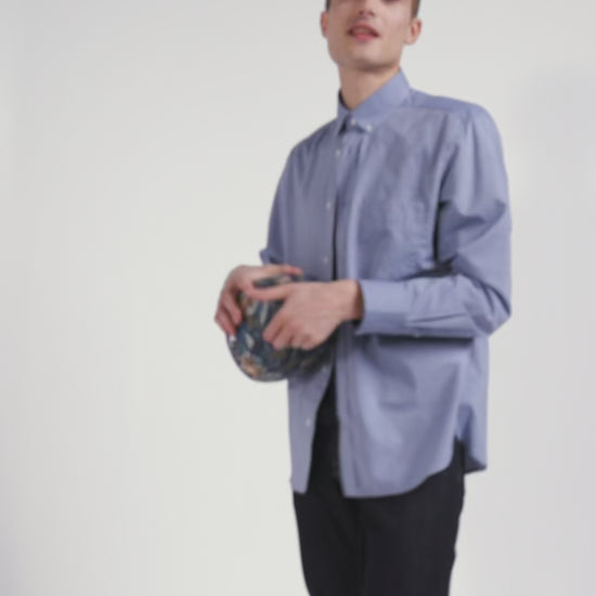 Notre chemise homme en toile de coton denim ciel est rehaussée par des coudières ornées d'un micro-motif floral tendance. Cette chemise bleue allie sophistication et originalité. Portée seule ou ouverte sur un T-shirt blanc en surchemise, elle offre une touche de fantaisie tout en restant classique et adaptée à toutes les occasions.