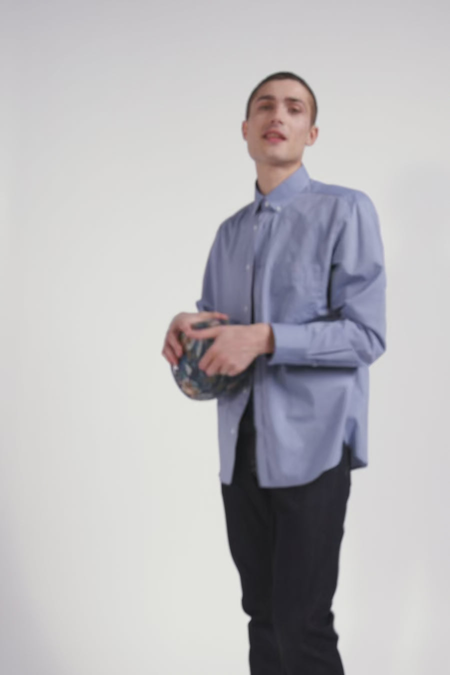Chemise en coton denim ciel coupe Regular coudières imprimées
