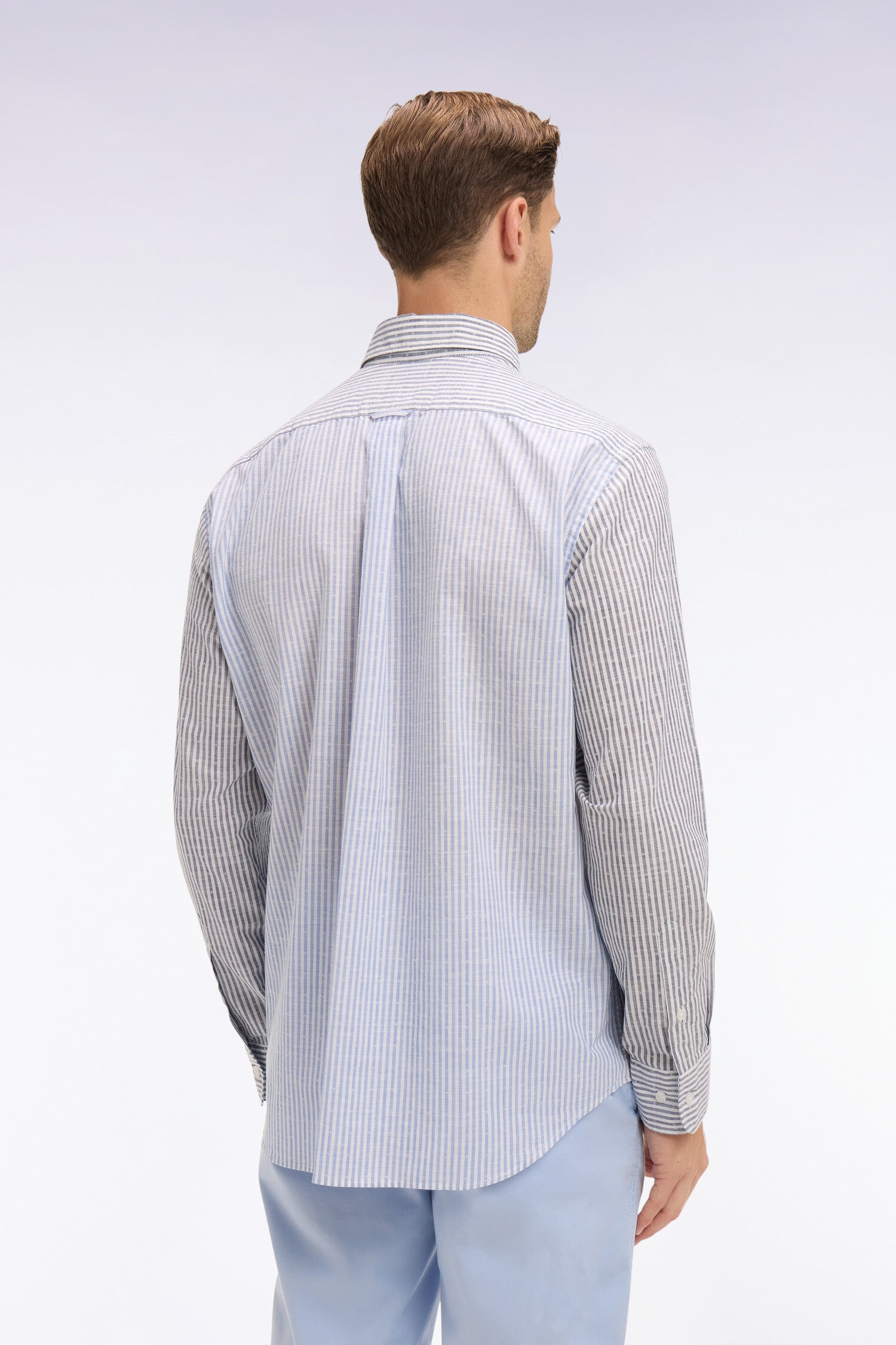 Chemise en coton jacquard Dobby à rayures bâtons bleues