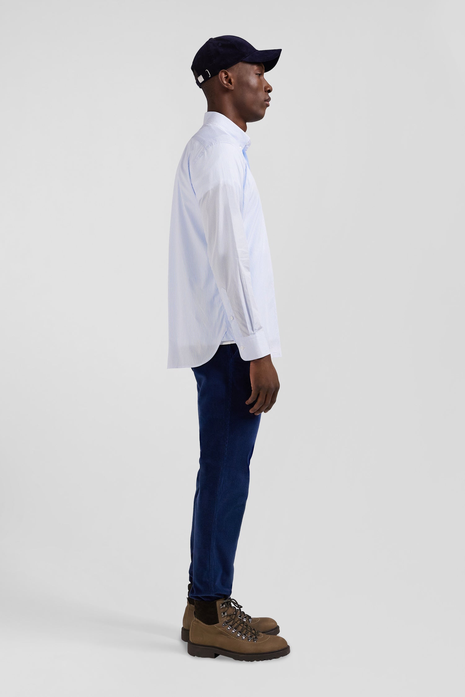 Chemise en coton jacquard rayé ciel coupe Regular
