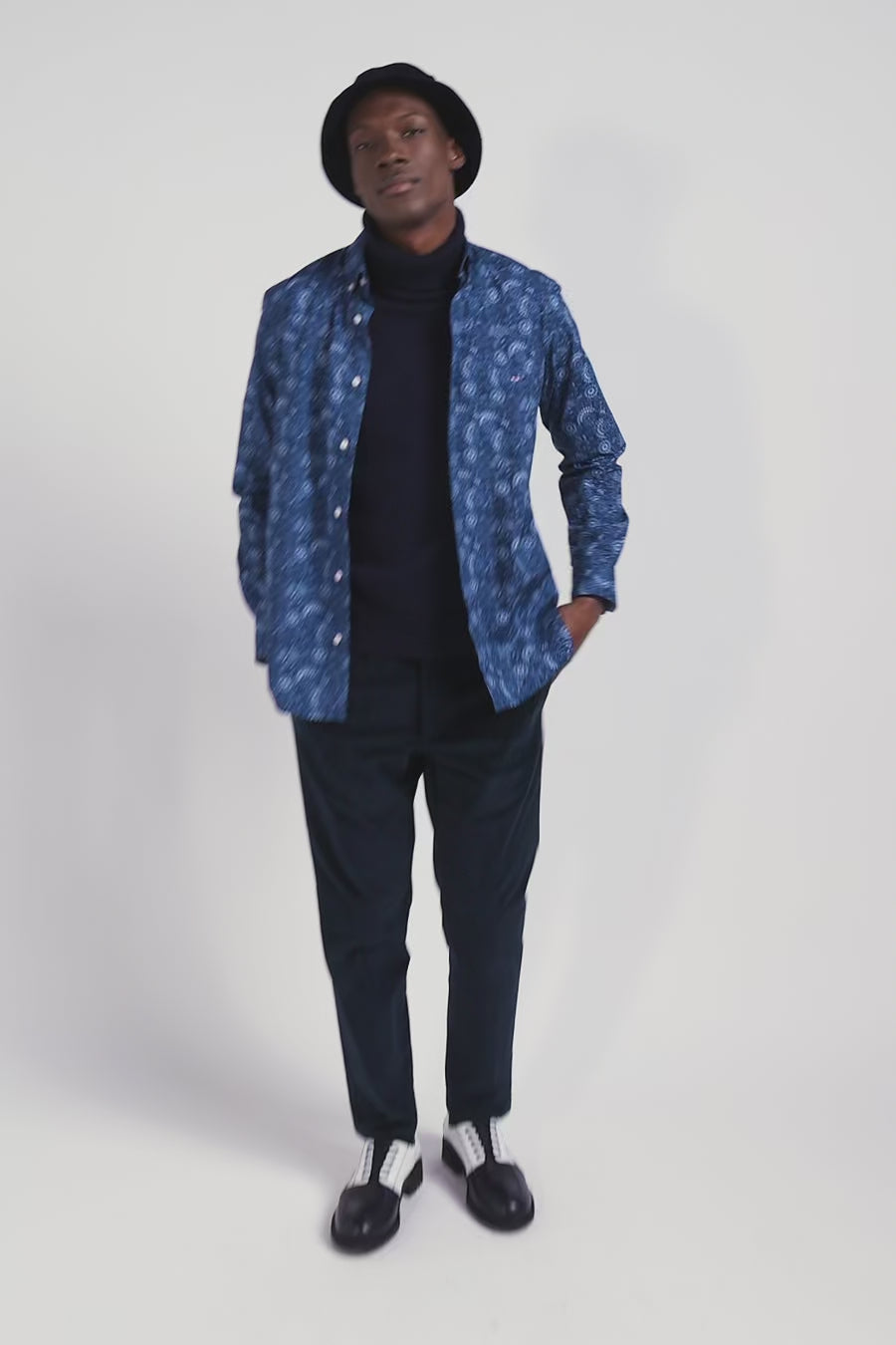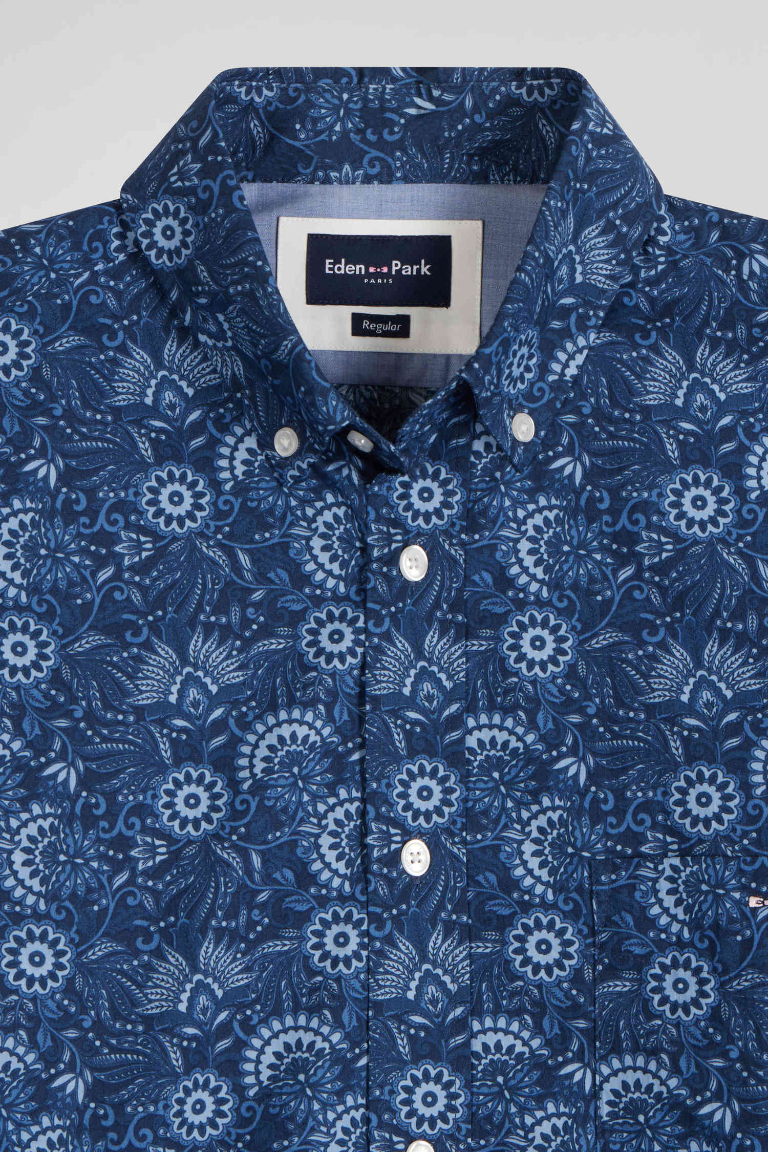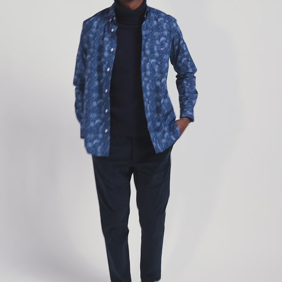 Chemise en coton marine à imprimé graphique coupe Regular