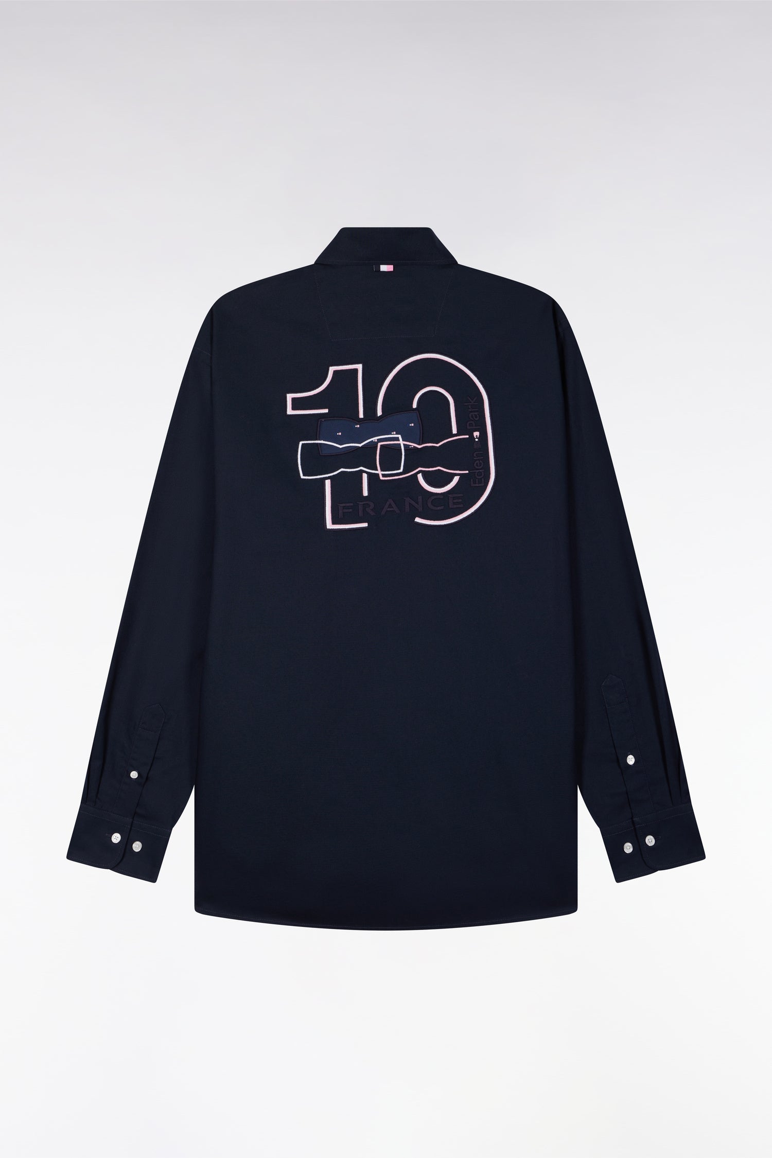 Allure impeccable et esprit rugby affirmé : cette chemise en coton pinpoint se distingue par ses détails soigneusement pensés en hommage au XV de France. Le coton pinpoint est une étoffe douce et légèrement texturée, plus fine que l’oxford et plus structurée que la popeline, c'est donc le choix idéal pour des chemises élégantes au tombé naturel. Son col boutonné, sa coupe droite et son badge gomme sur la poitrine lui confèrent une élégance sport-chic, soulignée par sa large broderie dans le dos et ses applications de tissu cravate imprimé aux couleurs de notre emblème