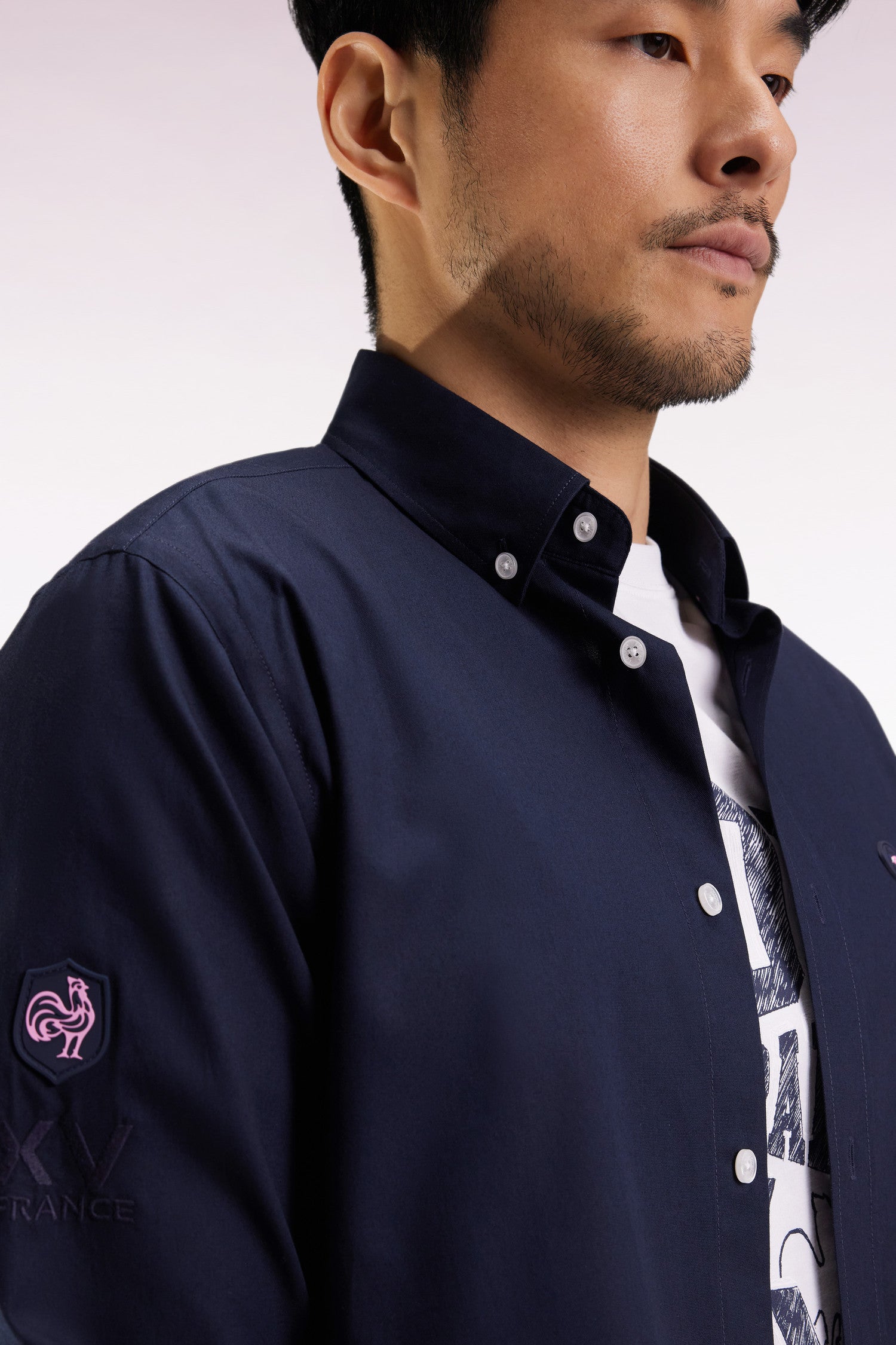 Chemise en coton marine broderie XV de France coupe droite