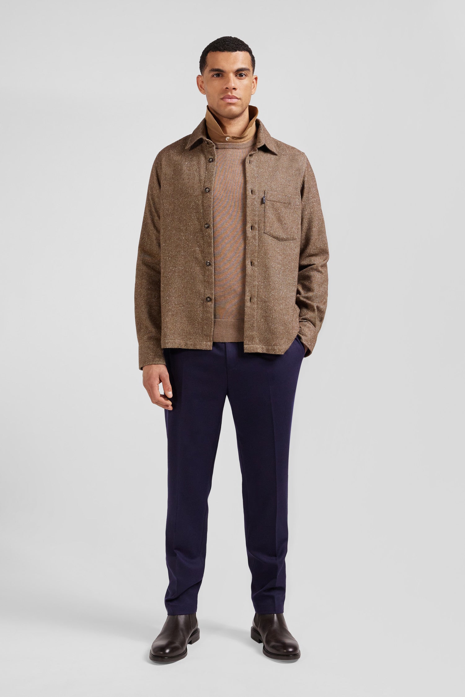 Notre surchemise en tissu japonais, est confectionnée dans un coton mélangé et disponible en teintes intemporelles de beige, marron ou marine. Cette pièce légèrement rétro arbore une coupe droite parfaitement adaptée à vos jeux de superposition. Son aspect unique est complété par une poche plaquée, subtilement rehaussée par la griffe Eden Park reprenant notre iconique nœud papillon rose. Cette surchemise masculine allie sophistication et confort s'accordant aussi bien à un jean qu'à un pantalon d'inspiration chino.