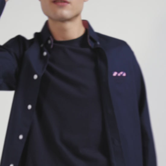Chemise en coton Oxford bleu marine nœud papillon cerclé coupe Regular