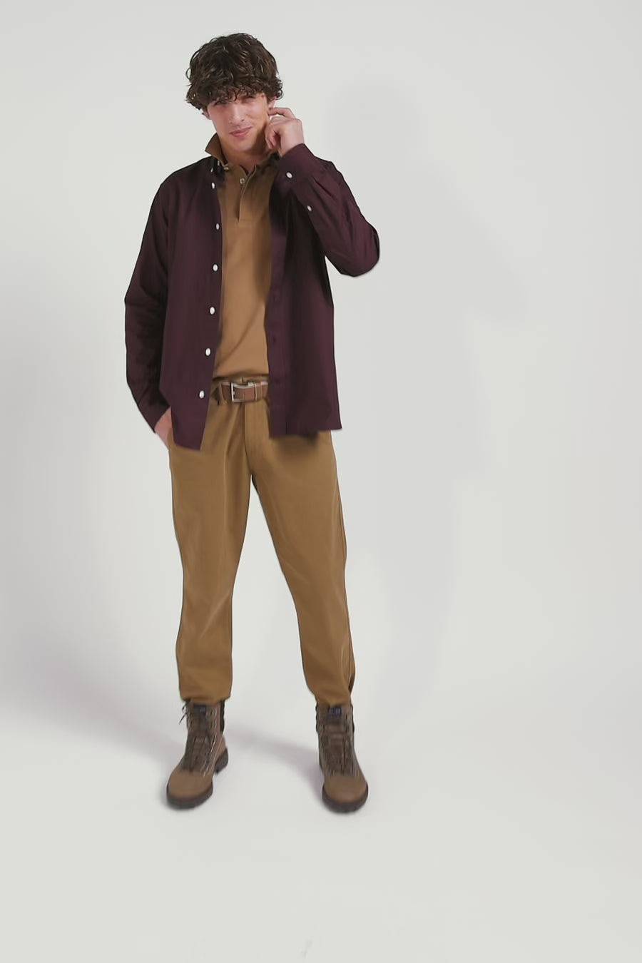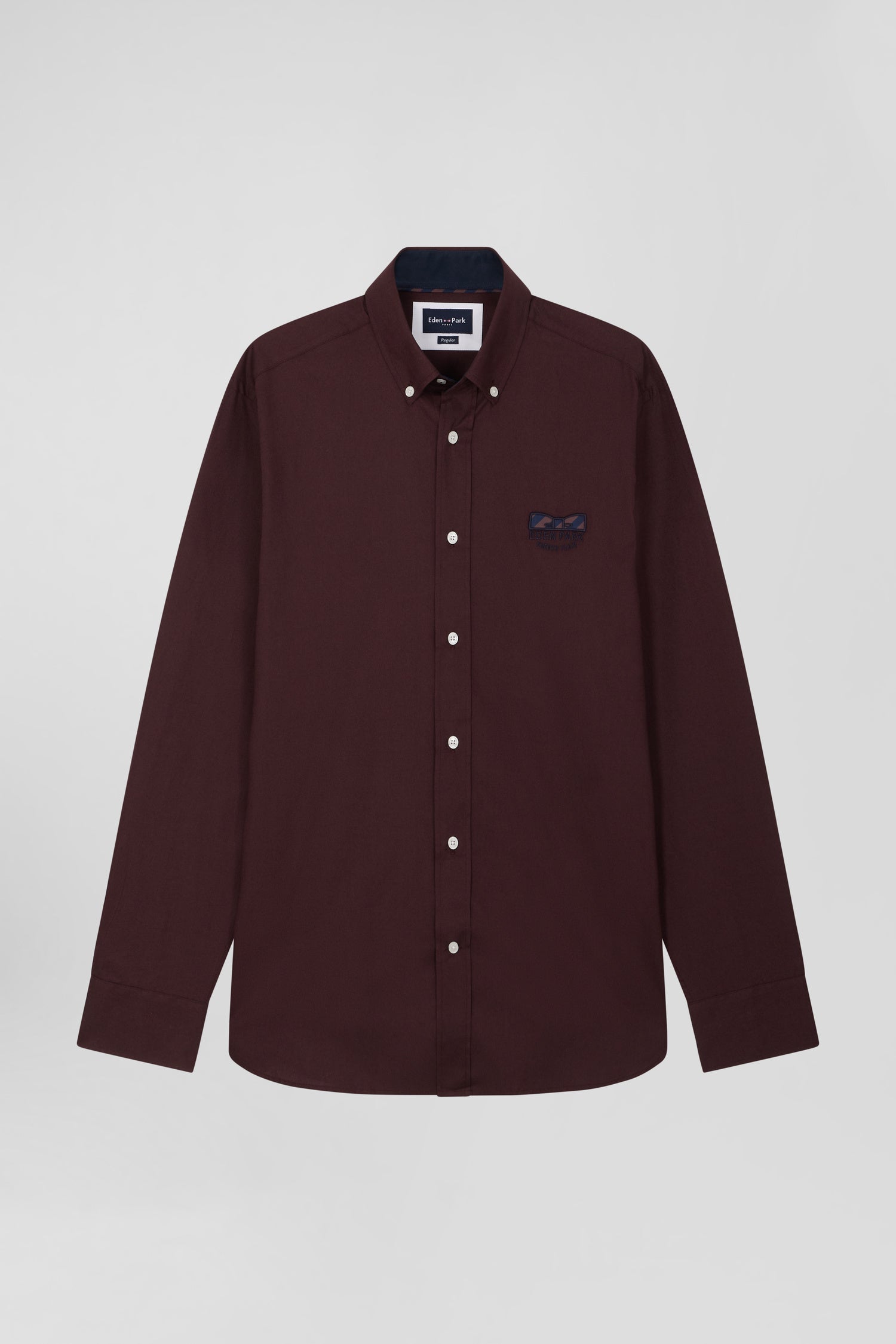 Chemise en coton Oxford bordeaux nœud papillon cerclé coupe Regular