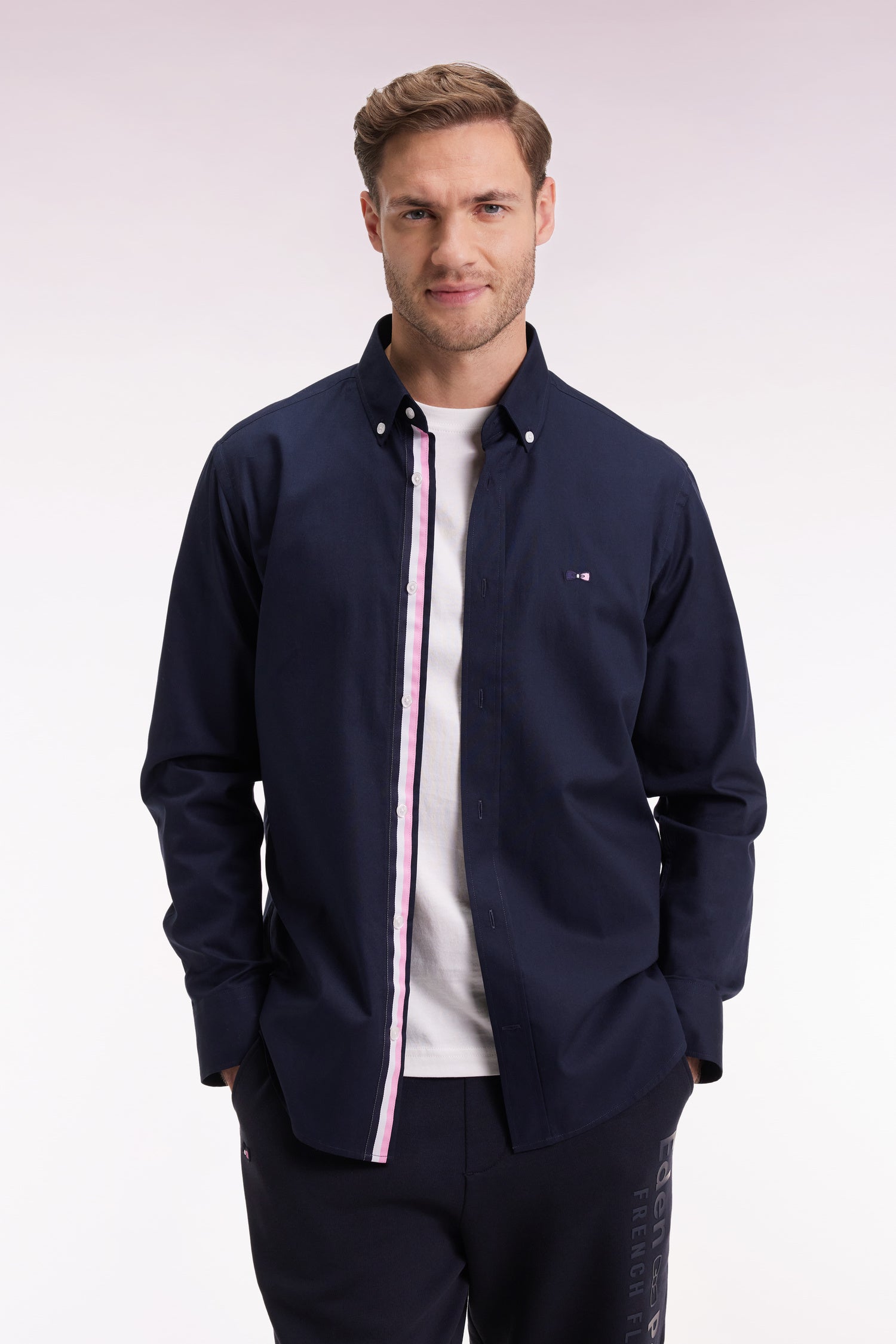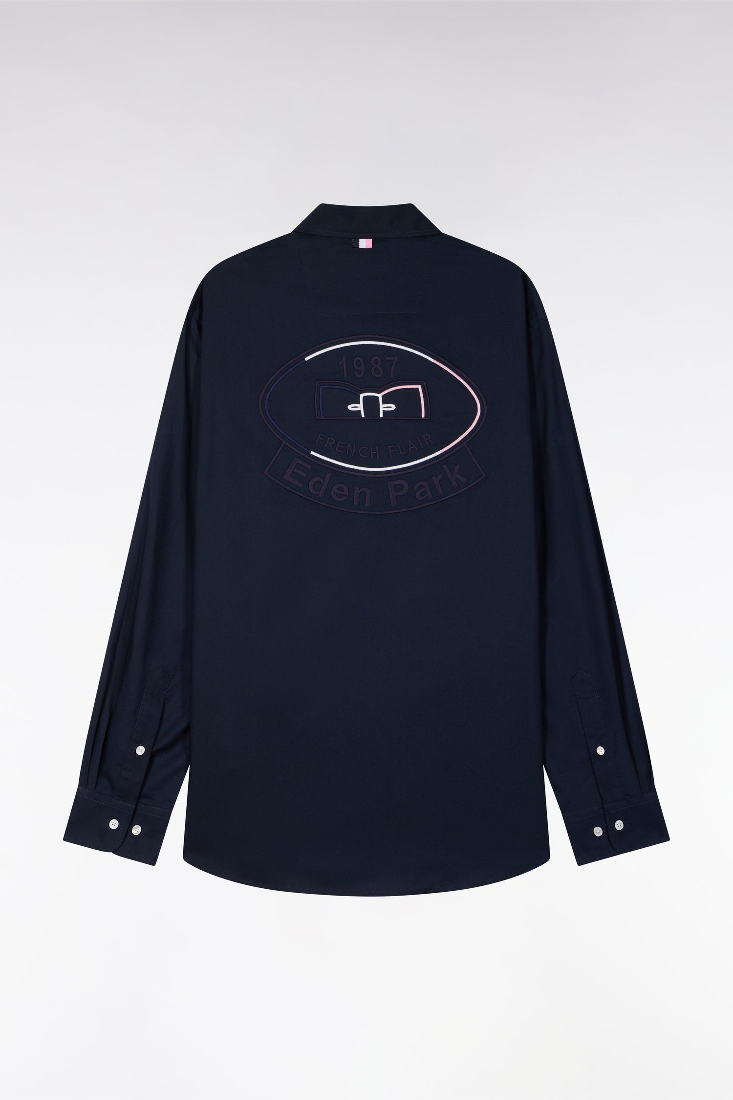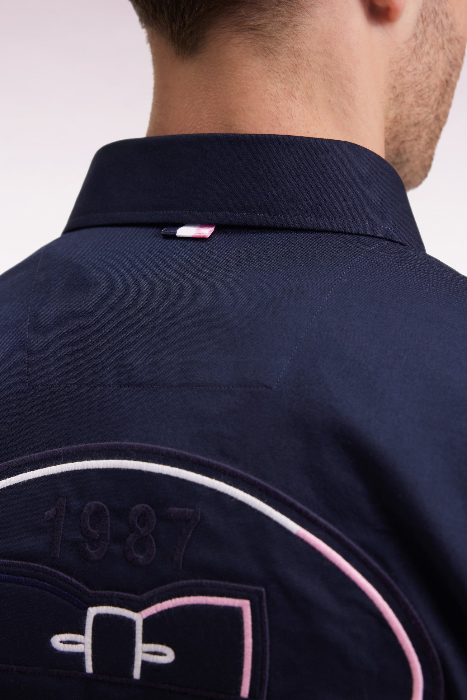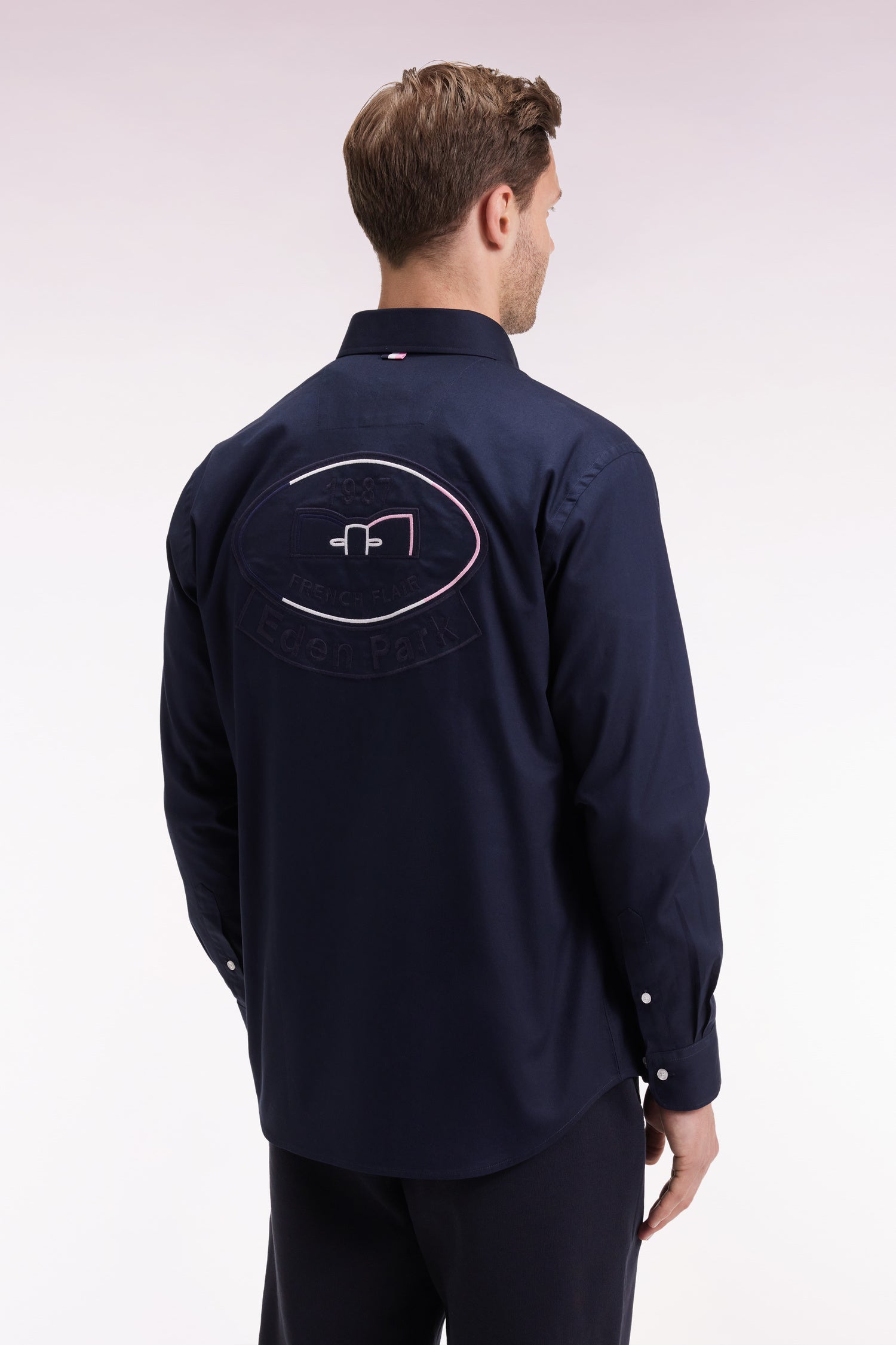 Chemise en coton pinpoint marine broderie dos coupe droite
