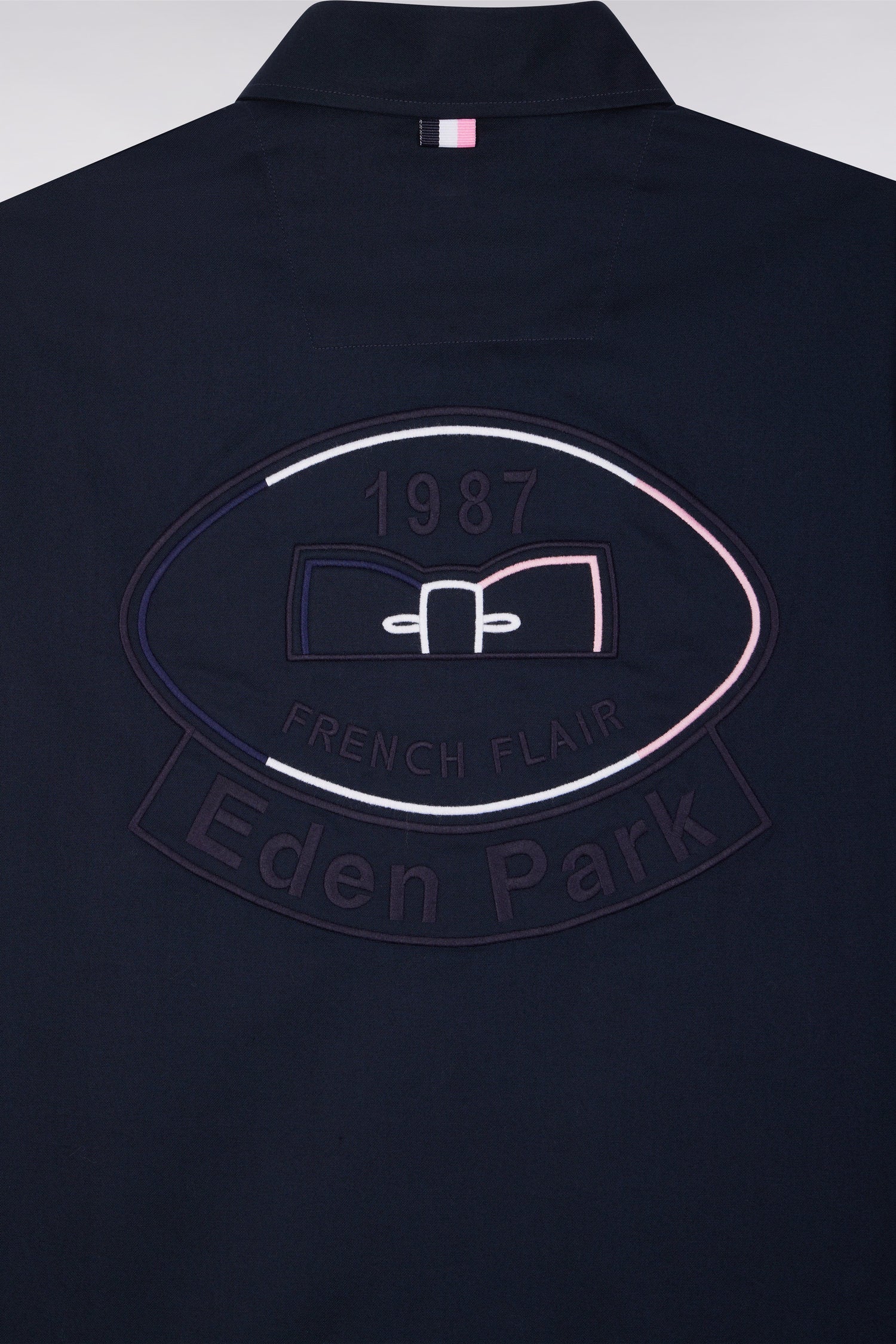 Cette chemise masculine à l’esprit French Flair affirme son caractère jusque dans ses moindres détails. Réalisée dans un coton à armure pinpoint, elle se distingue par un ruban tricolore apposé à l’encolure dos et par ses même finitions contrastées au niveau de la patte de boutonnage, du col et des poignets. Fidèle à l’ADN de la maison, cette chemise arbore une broderie d'inspiration rugby dans le dos et l'emblème nœud papillon Eden Park brodé sur la poitrine, ici décliné dans des couleurs tricolores variant selon le coloris choisi. Une pièce forte du vestiaire masculin, à la silhouette nette et contemporaine