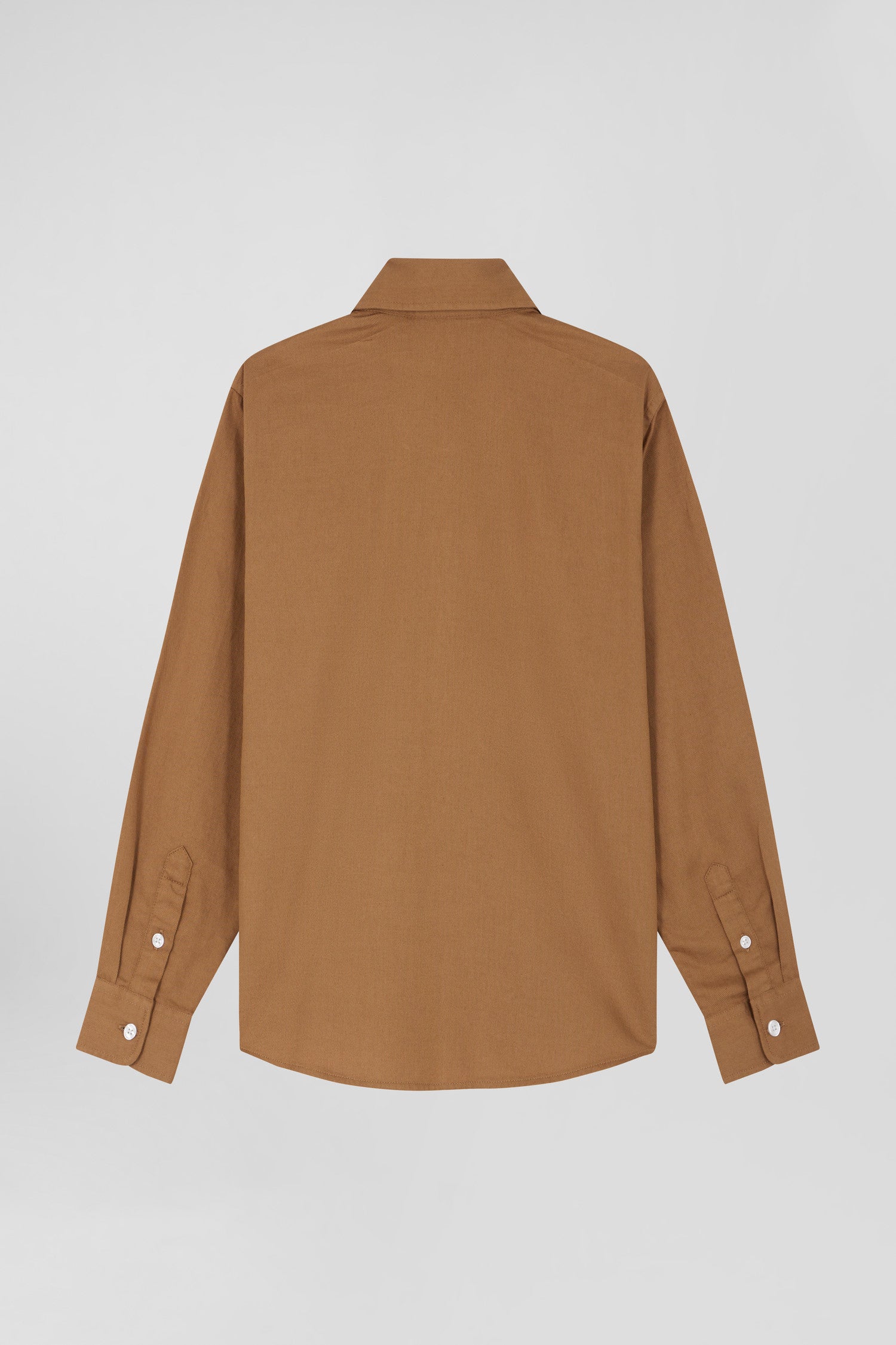 Chemise en coton uni noisette en coton oxford coupe Regular