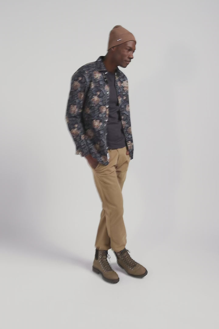 Chemise en flanelle de coton bleu marine imprimé floral coupe Slim