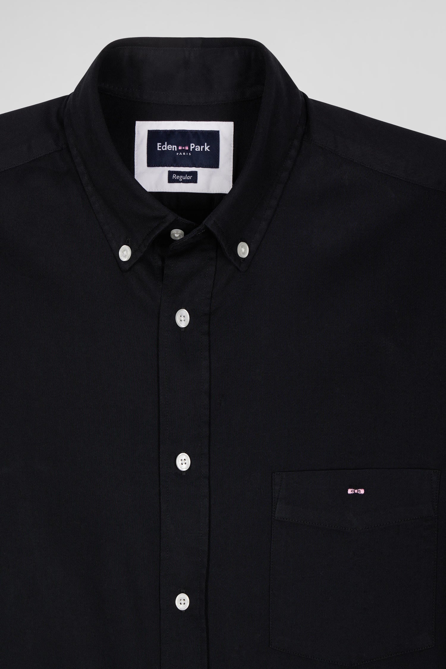 Réalisée avec soin dans une coupe Regular droite, cette chemise unie est confectionnée dans un piqué coton. Sa poche plaquée est rebrodée de notre emblématique nœud papillon rose, signature Eden Park tandis que sa patte de boutonnage classique et son col à pointe boutonné mettent en valeur nos boutons ovales siglés rappelant la forme des ballons de rugby.