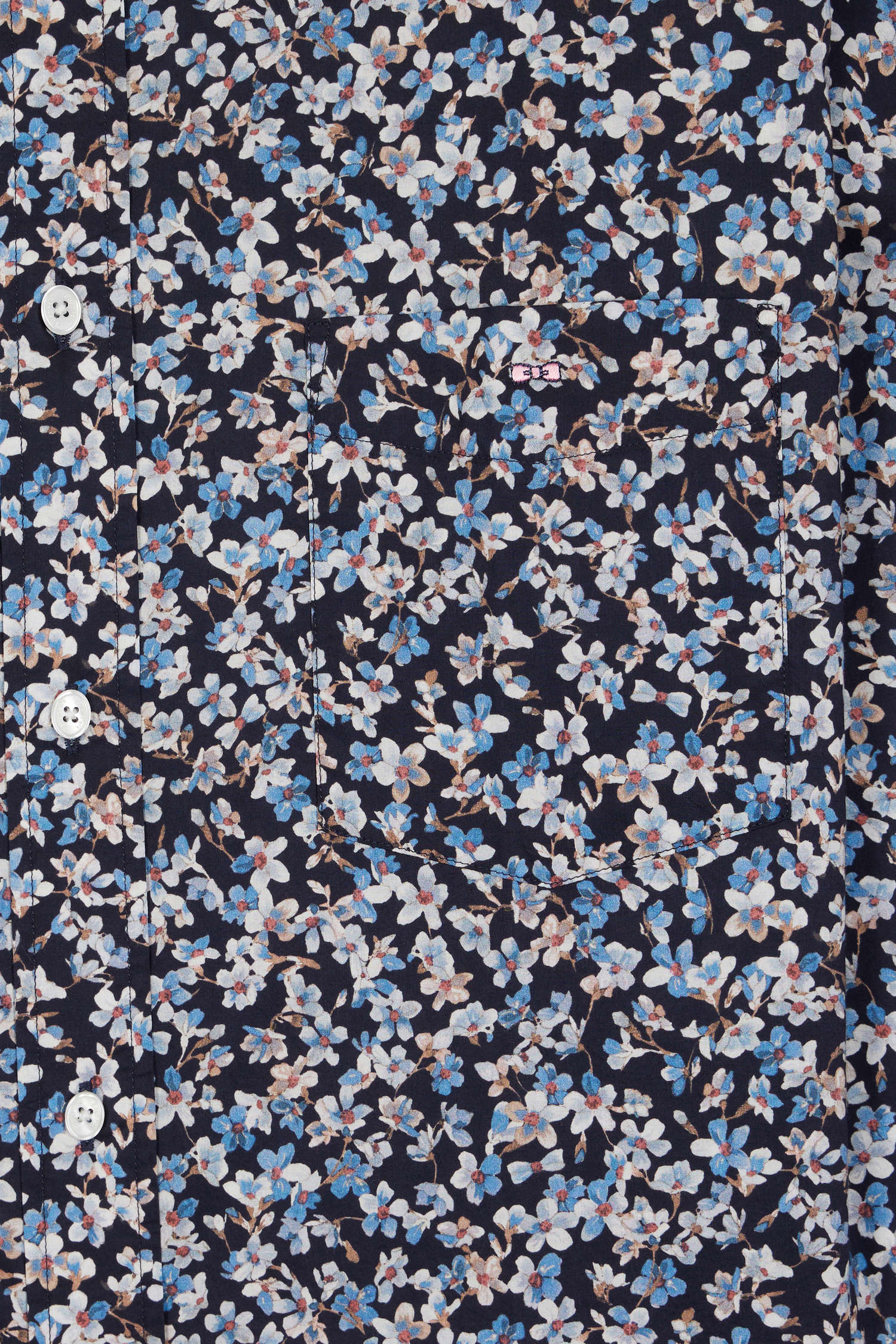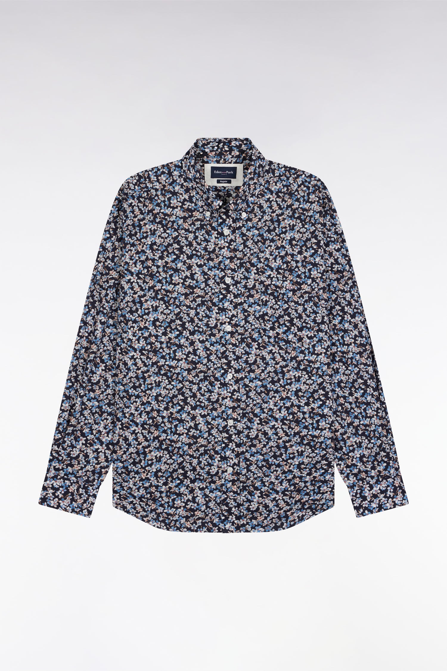 Chemise en popeline de coton à micro-motifs fleurs bleu coupe droite
