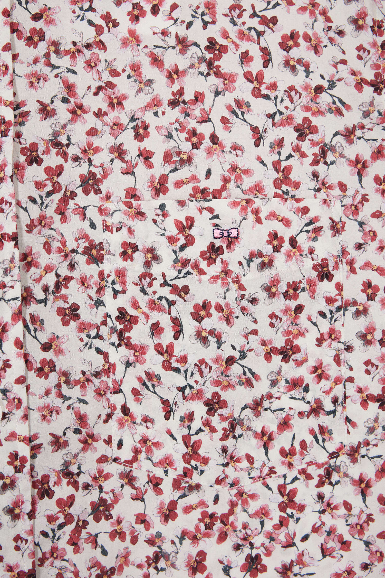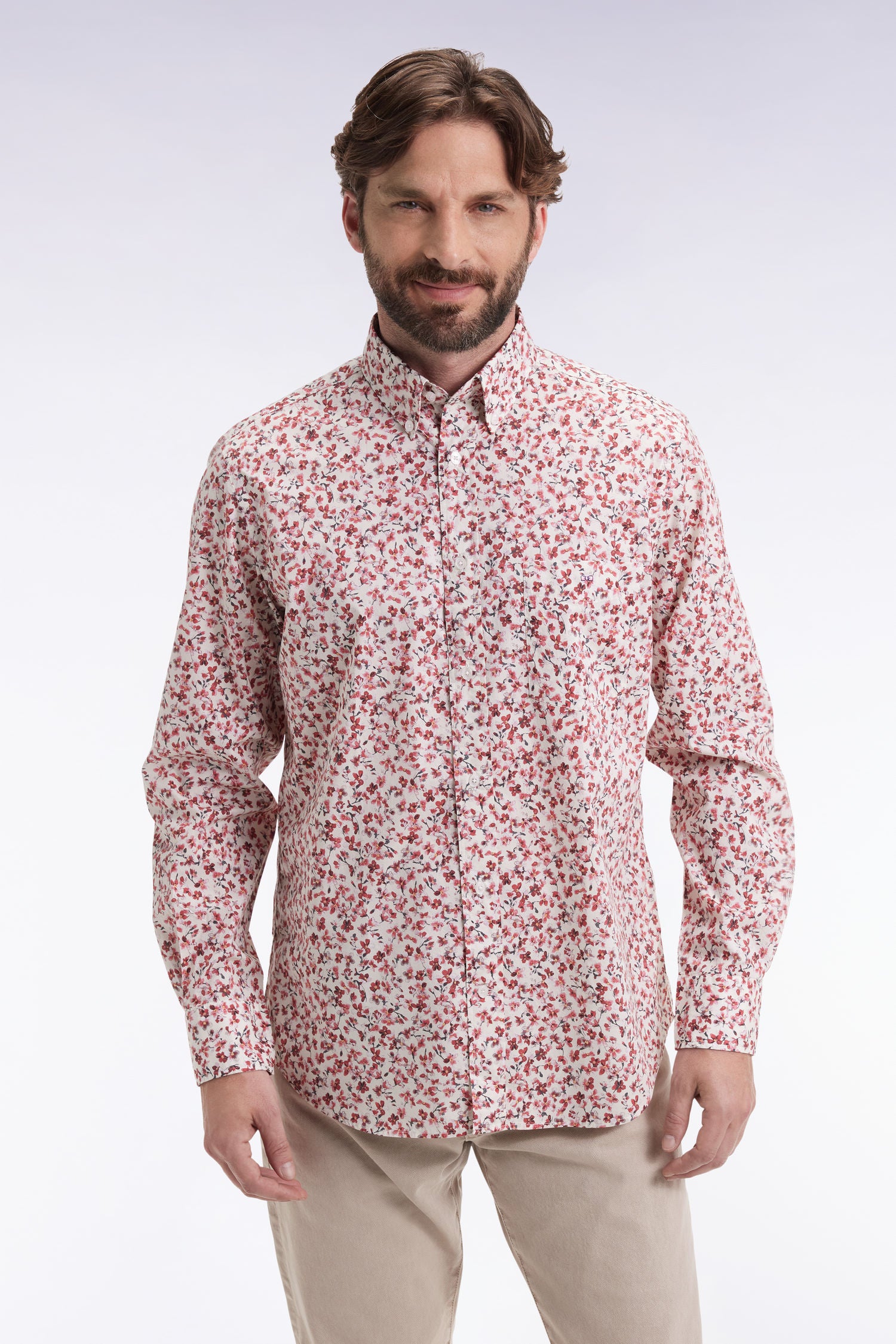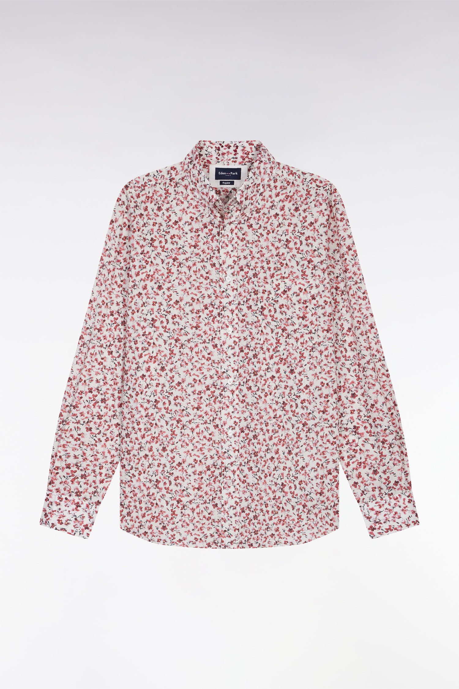 Chemise en popeline de coton à micro-motifs fleurs rouge coupe droite