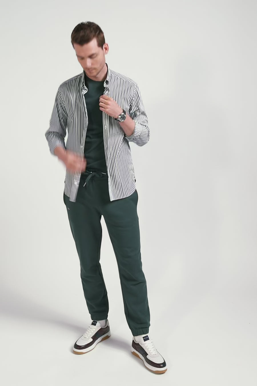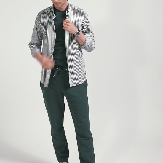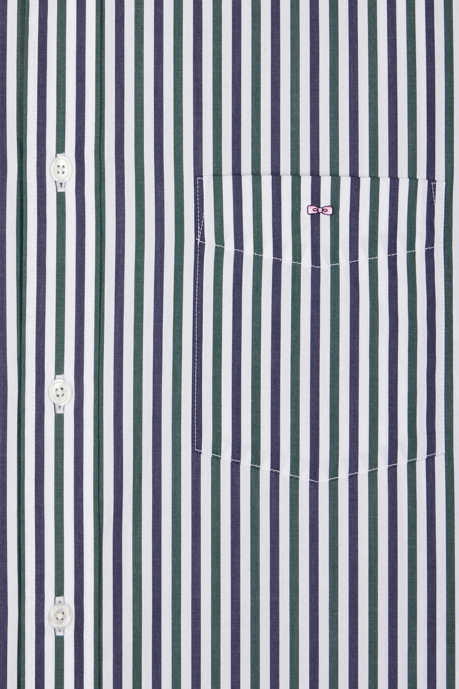 Notre chemise en popeline de coton rayée est conçue pour s'adapter à toutes les silhouettes grâce à sa coupe Regular droite. Ses rayures bâtons bicolores ajouteront une touche de dynamisme à votre tenue. Le col à pointes boutonnées assure un maintien impeccable, tandis que son pli au dos vous permet de bénéficier d'une aisance supplémentaire. Sa broderie nœud papillon sur la poche poitrine signe cette chemise homme d'une touche d'élégance subtile. Ce classique revisité avec modernité est décliné pour la saison dans une large palette de couleurs et s'associe aussi bien à nos pantalons coupe chino qu'à un jean droit.