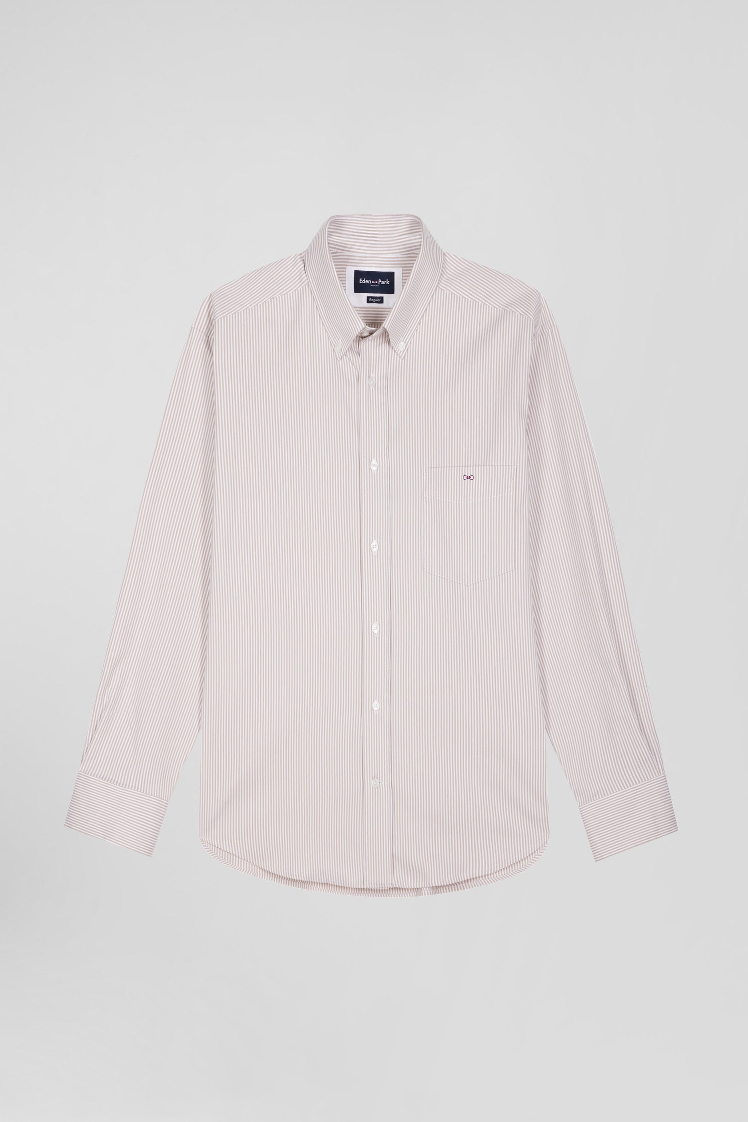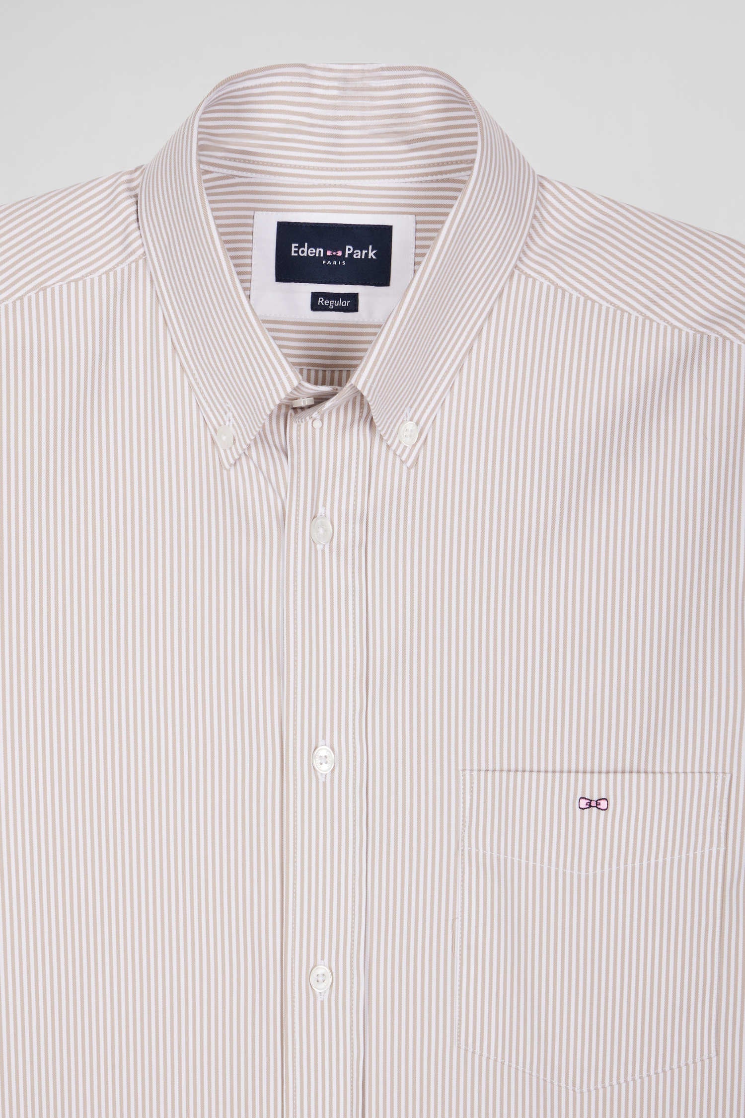 Chemise en popeline de coton beige à rayures bâton coupe Regular
