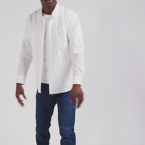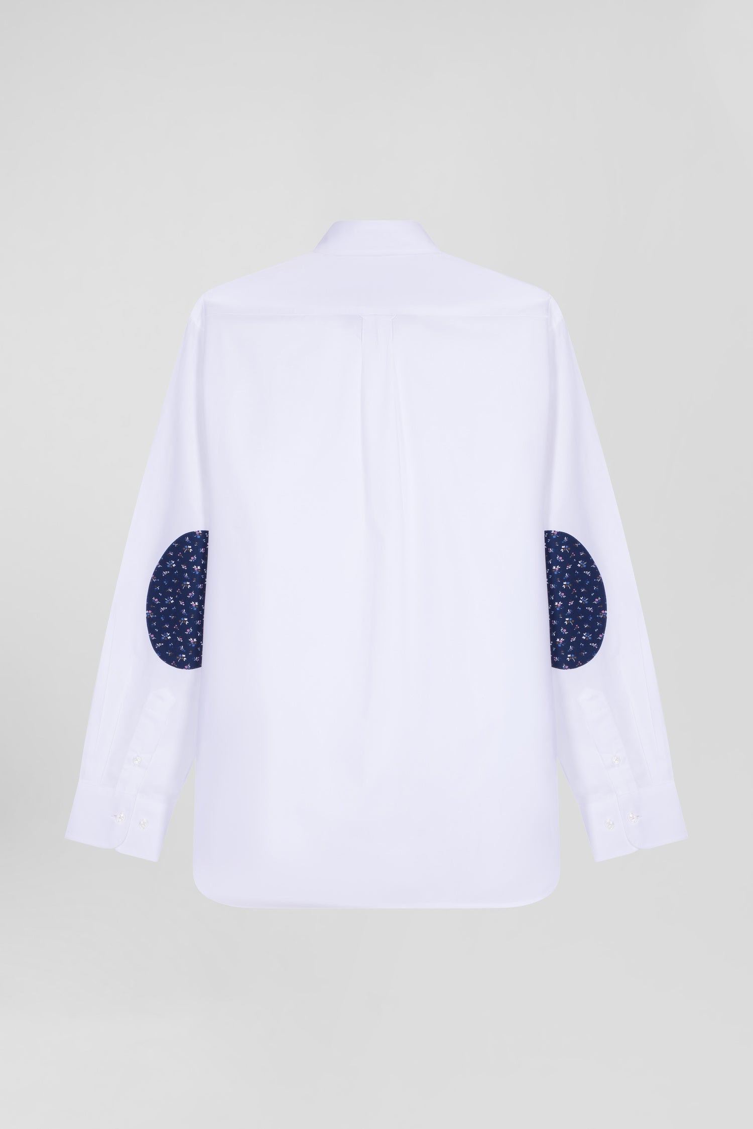 Chemise en popeline de coton blanche col boutonné et coudières imprimées coupe Regular