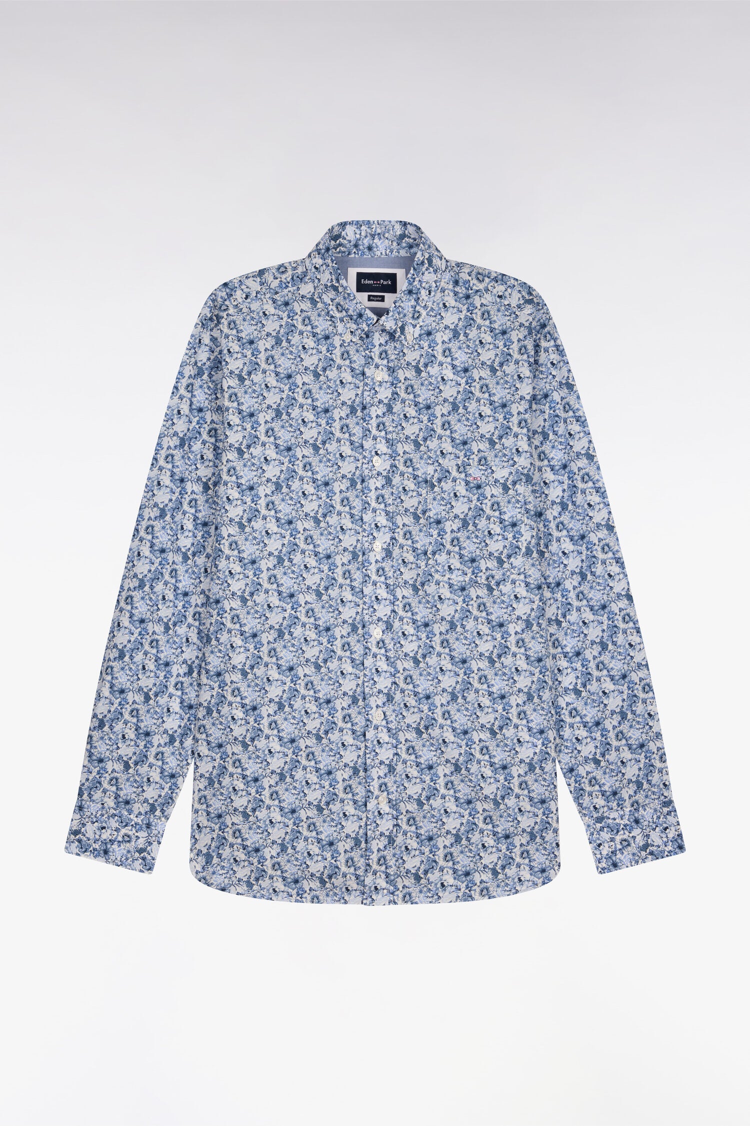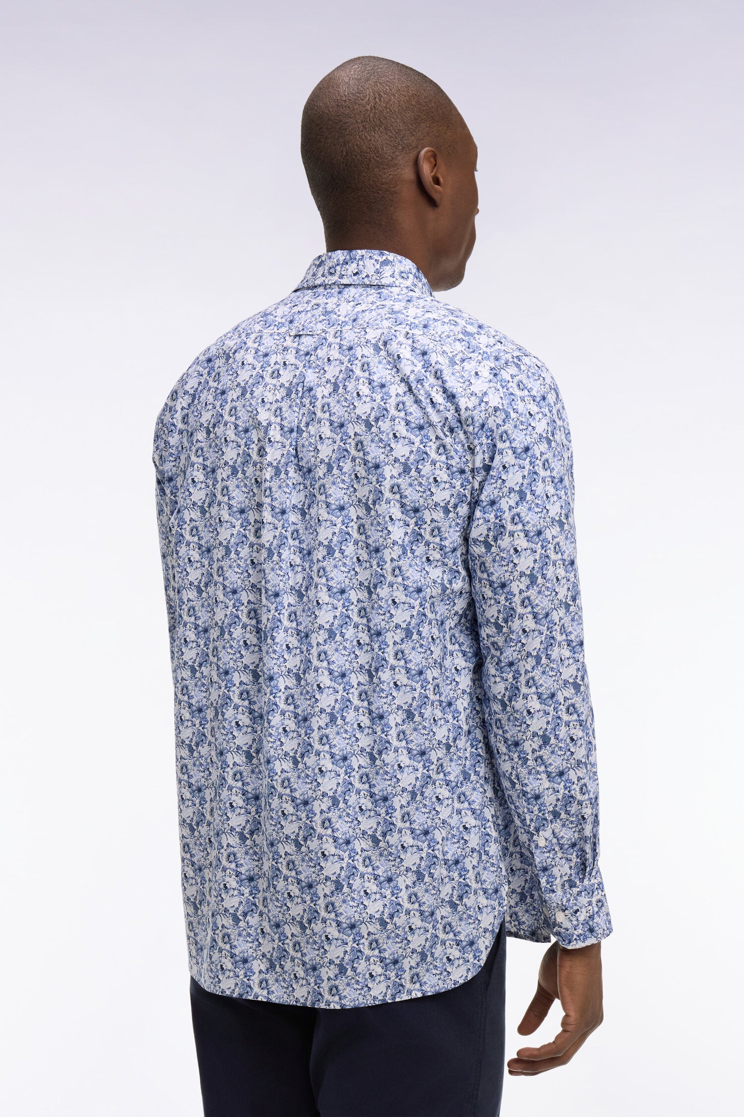 Chemise en popeline de coton bleu à motif floral